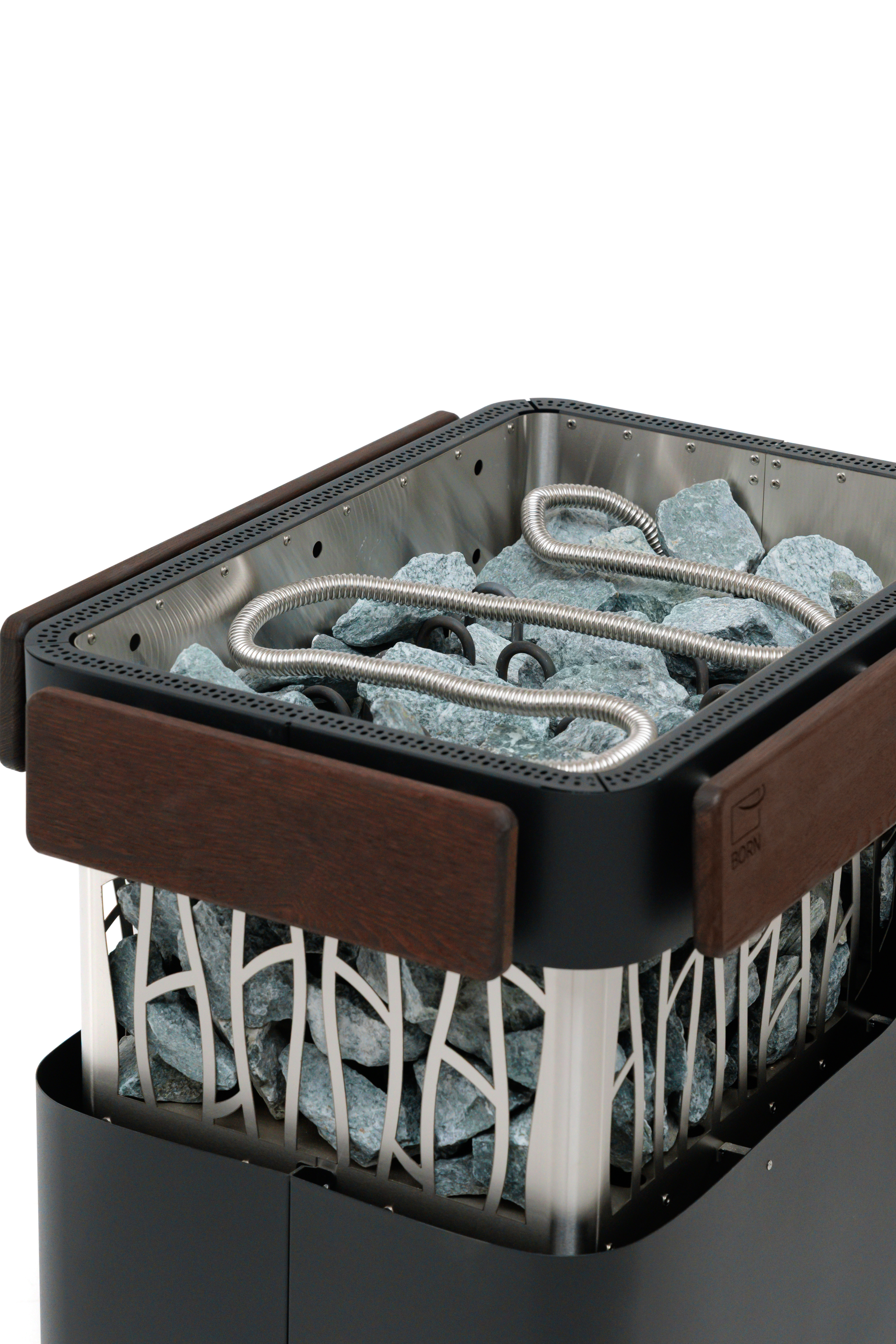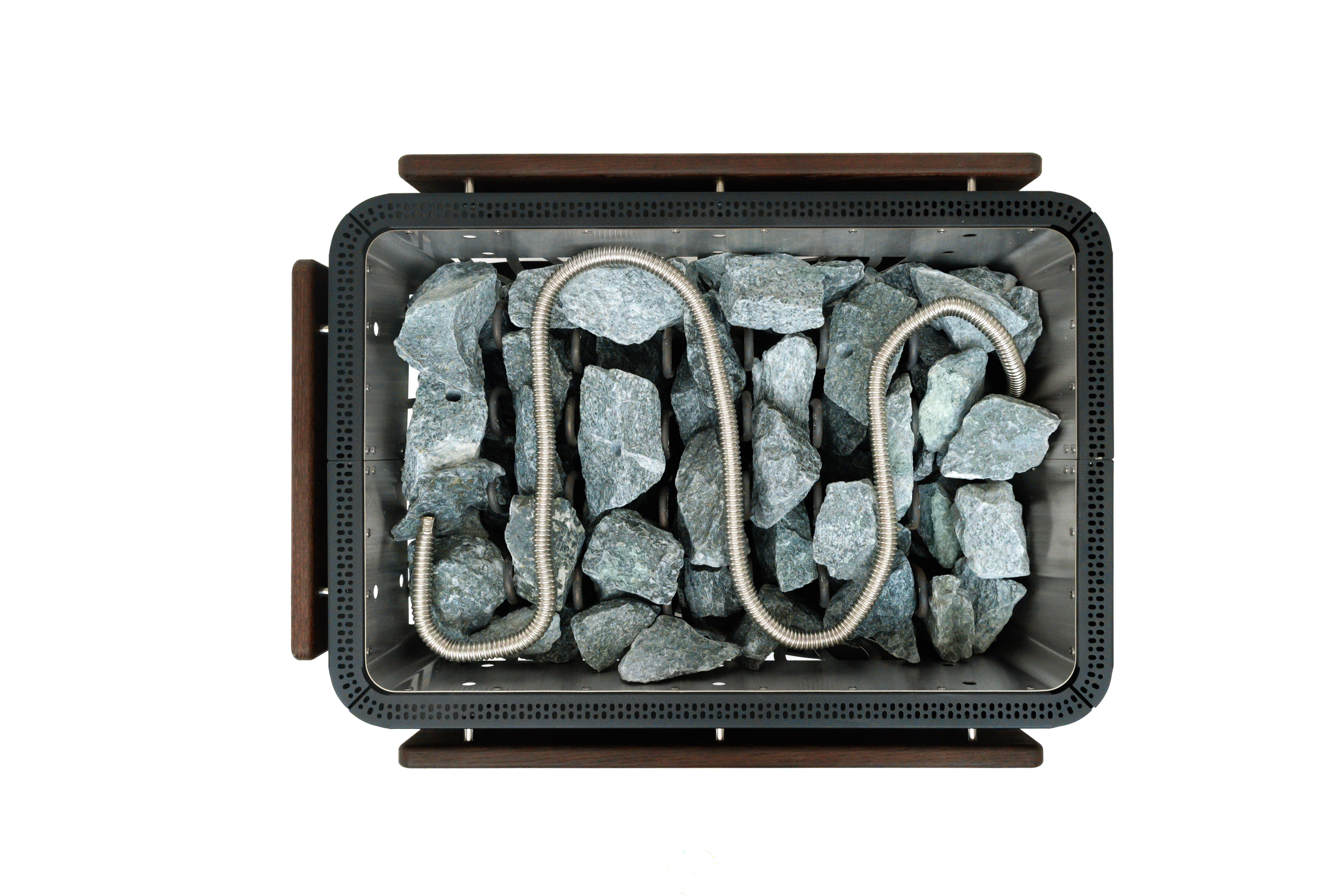 - Ранний первый пар. Паропровод размещается в самой горячей части печи (без контакта с ТЭНами), быстро нагревается, как и стальные шарики, которые находятся внутри. Это позволяет получать обильный пар еще до того, как печь полностью прогреет все камни.