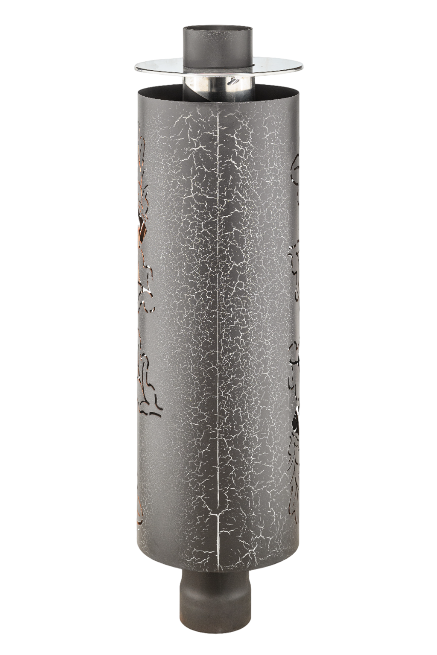 Дымоход выполнен из качественной конструкционной стали толщиной 3 мм и имеет высоту 1 метр. Труба снабжена шибером и имеет вместительную ёмкость для камней, которые не дадут парной перегреться и будут долго отдавать мягкое тепло. В комплекте идёт регулятор тяги, а так же в дымоходе есть регулятор конвекционного воздуха. Монтируется сразу на печь.