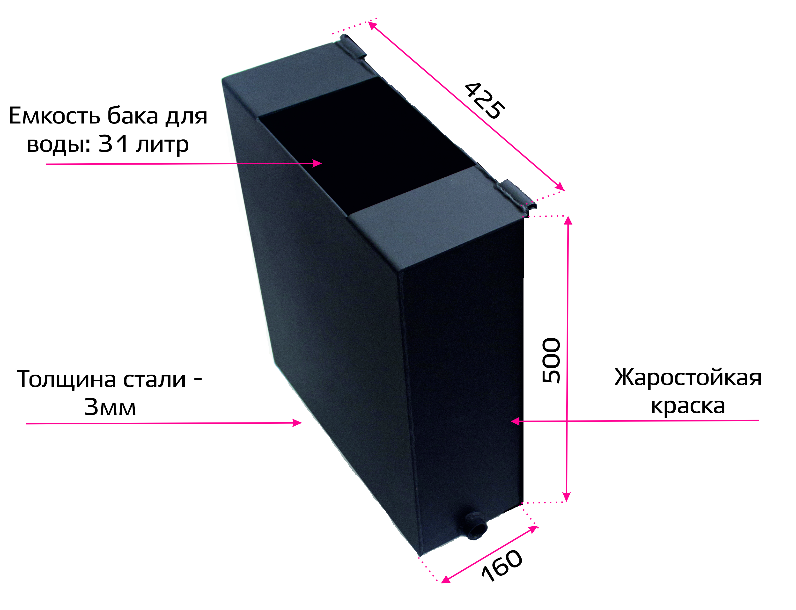 Важно помнить: навесной бак изготовлен из стали марки Ст3. Сп 5, которая является прокатом черных металлов. Данный вид металла со временем подвержен коррозии и в процессе активного взаимодействия с водой может образовывать ржавчину. Данное обстоятельство никаким образом не влияет на технические характеристики банной печи «Копеечка», не ухудшает ее технологических параметров и не является браком. Для безопасного использования в повседневной жизни бак рекомендуется чистить после каждой топки банной печи и сливать из него воду. Каждую новую топку также необходимо начинать с предварительной очистки бака.