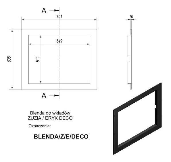 Декоративная рамка Deco – тонкая полоска, окрашенная черной порошковой краской, глянцевая, которая придает современный элегантный вид и оптически увеличивает фасад каминной топки.