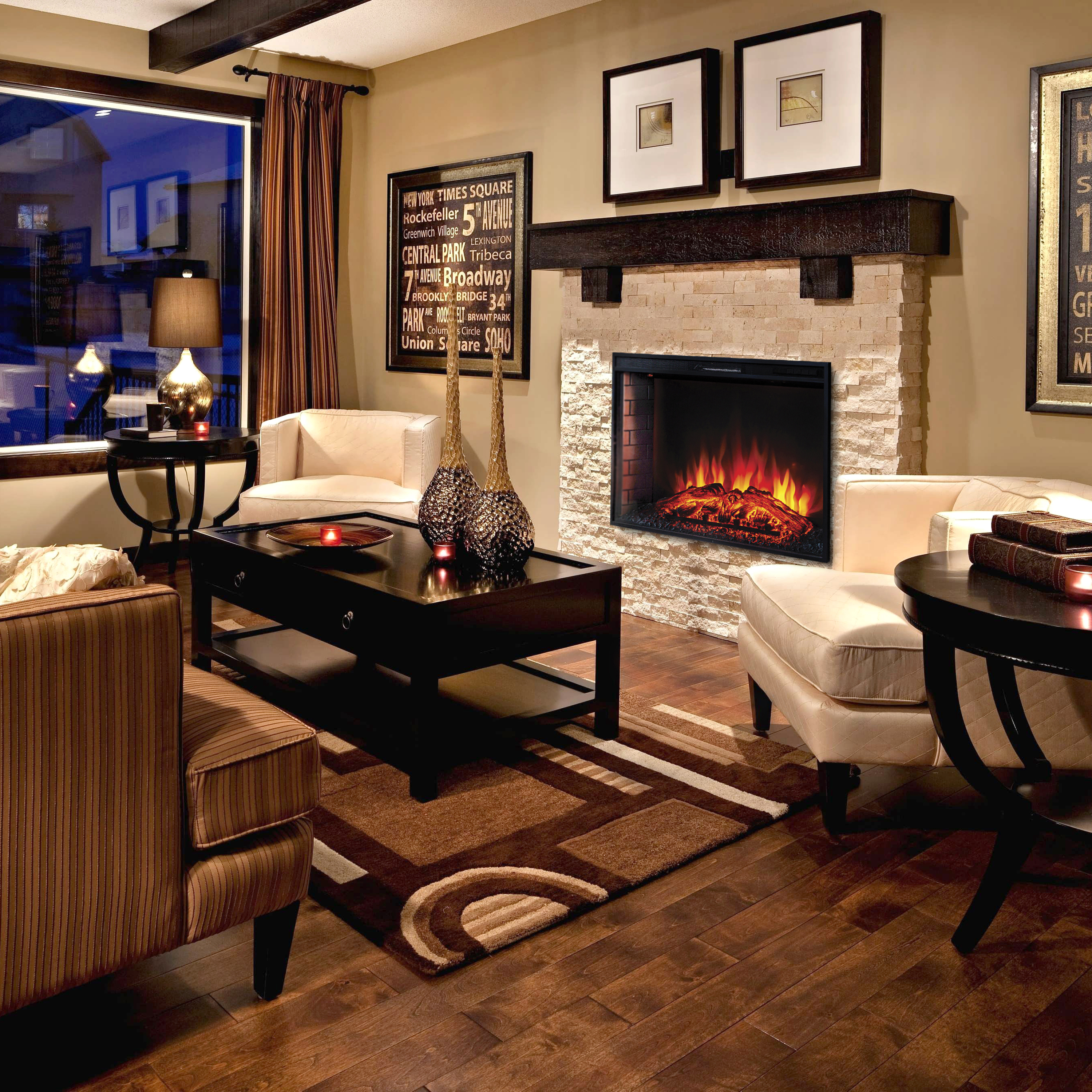 Epsilon 33 - классическая кирпичная кладка на стенках камина, реалистичный огонь с использованием LED-технологий, лаконичный строгий дизайн.