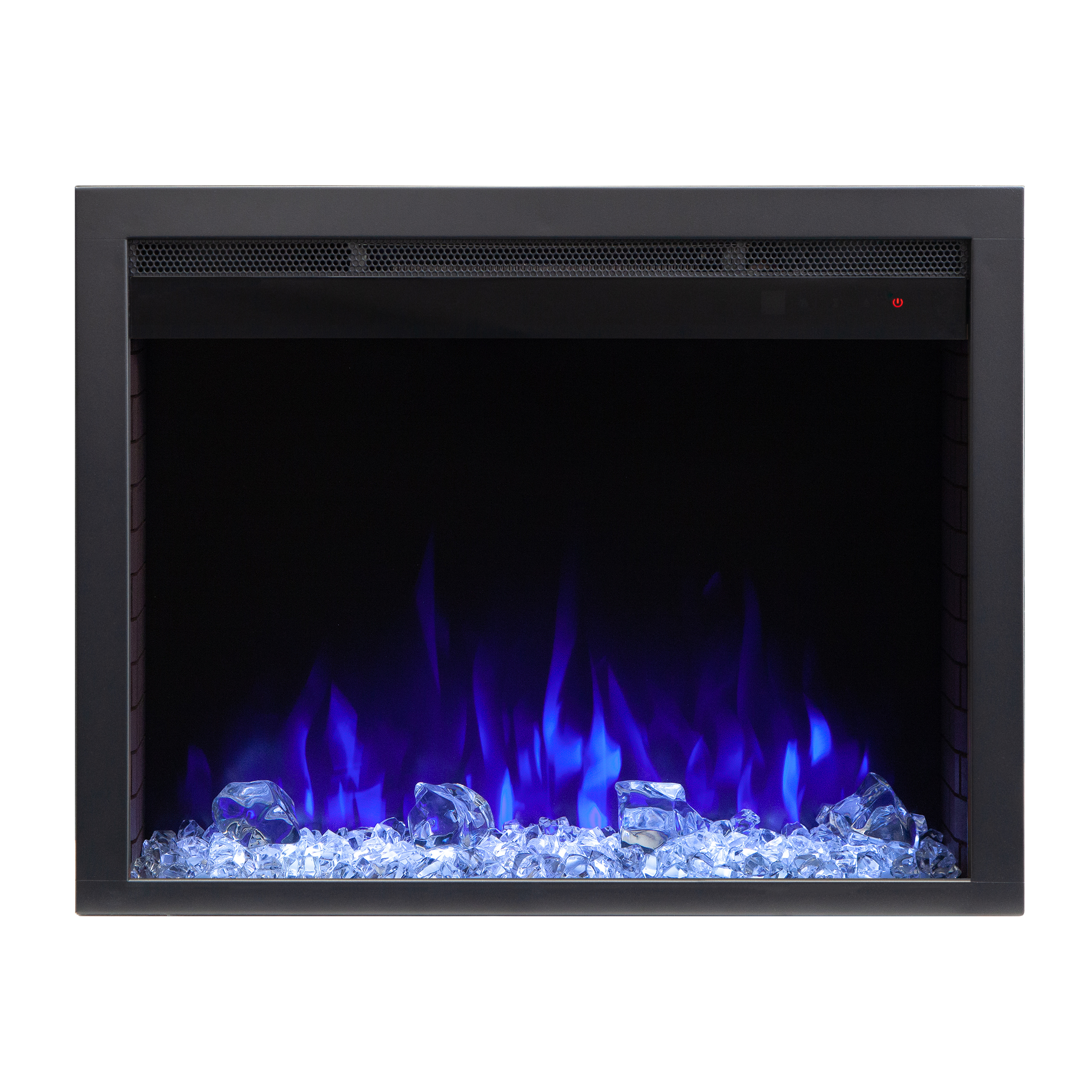 Основные функции электроочага Saphir 25 RealFlame – регулировка яркости и цвета пламени. При желании можно использовать подогрев и активировать звуковой эффект дров. Управляется с пульта дистанционного управления или с передней панели камина.