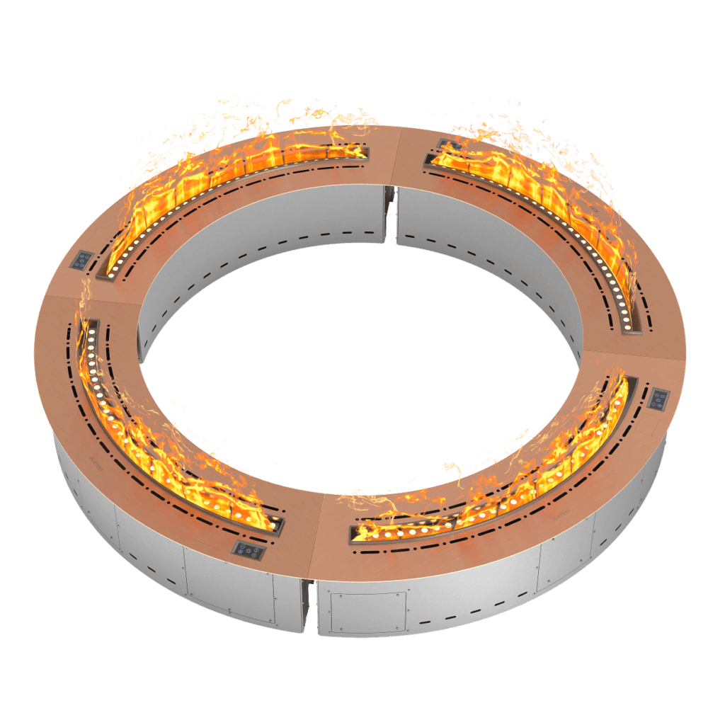 Удобная «секционность» модели позволяет собрать и замкнутый круг, и половину круга, или даже сложные элементы. Возможность соединения 15 топок с синхронным управлением позволит реализовать любой необычный проект.