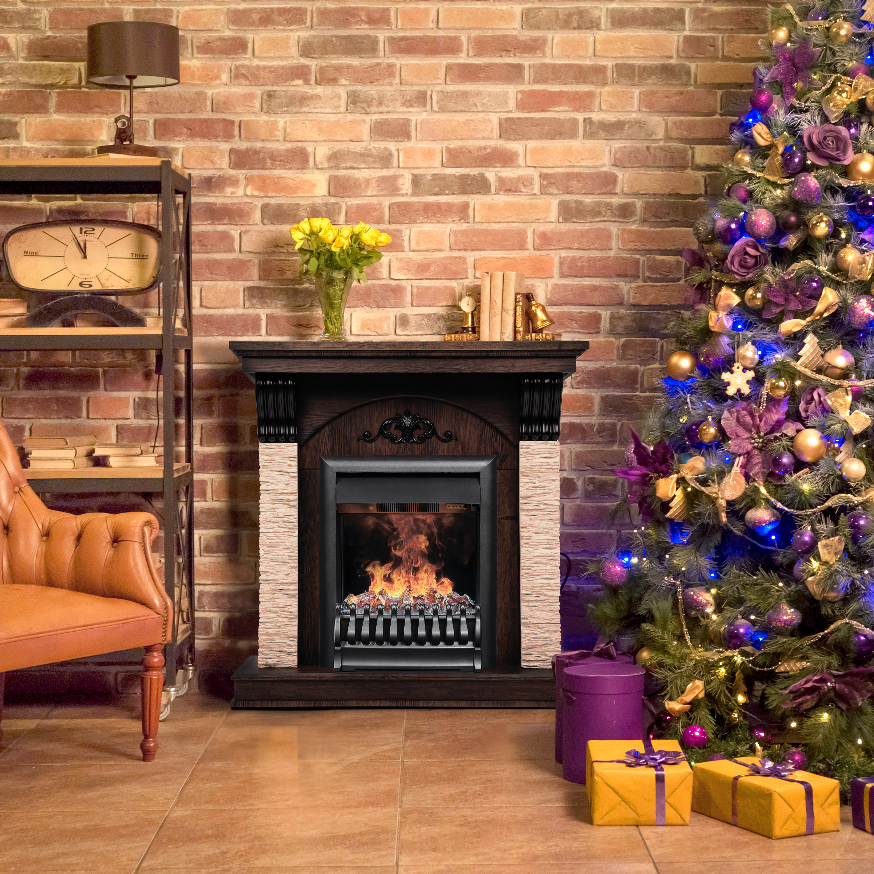 Портал выполнен из высококачественного шпонированного МДФ и искусственного камня. Подходит для стандартных очагов.