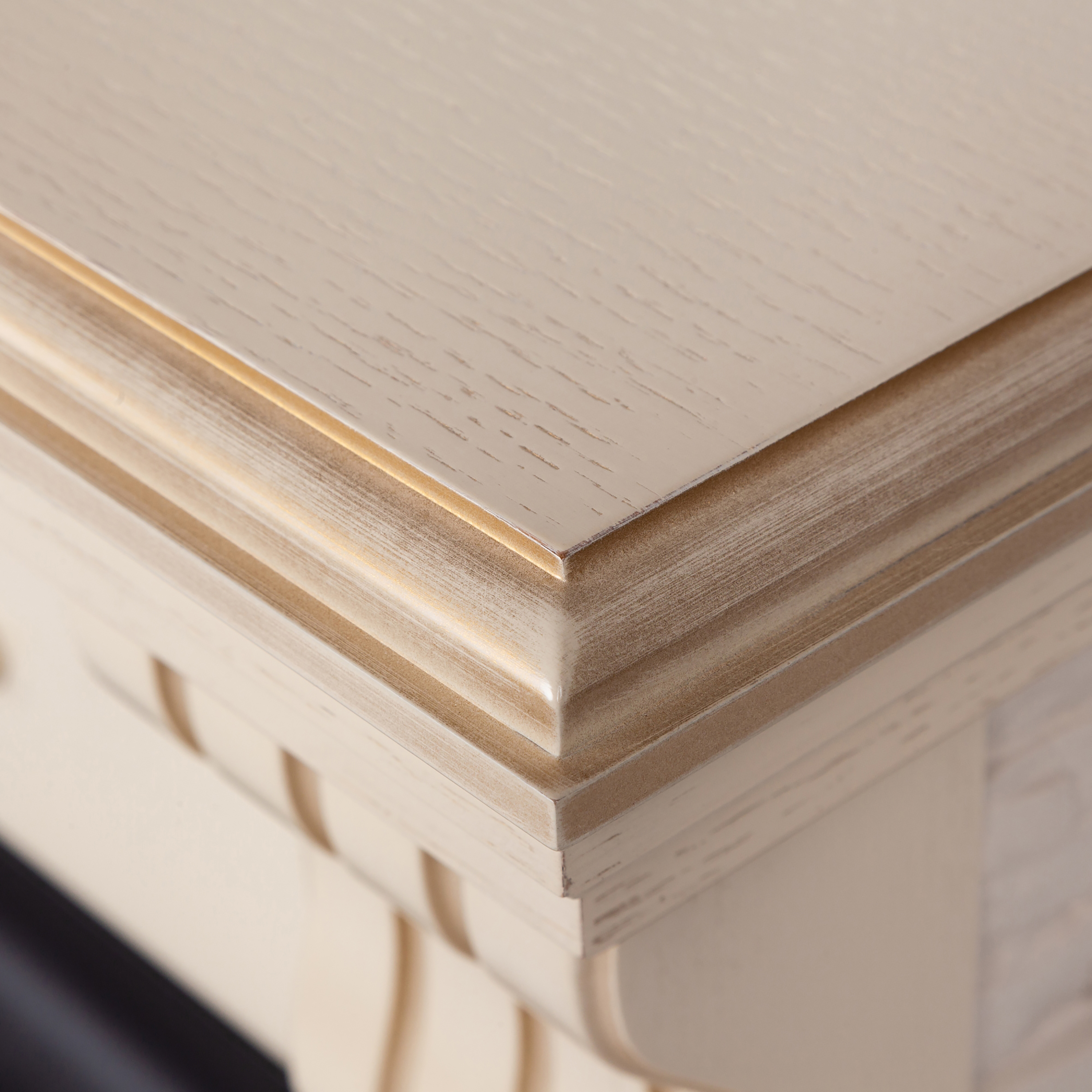Портал выполнен из высококачественного шпонированного МДФ и искусственного камня. Подходит для стандартных очагов.