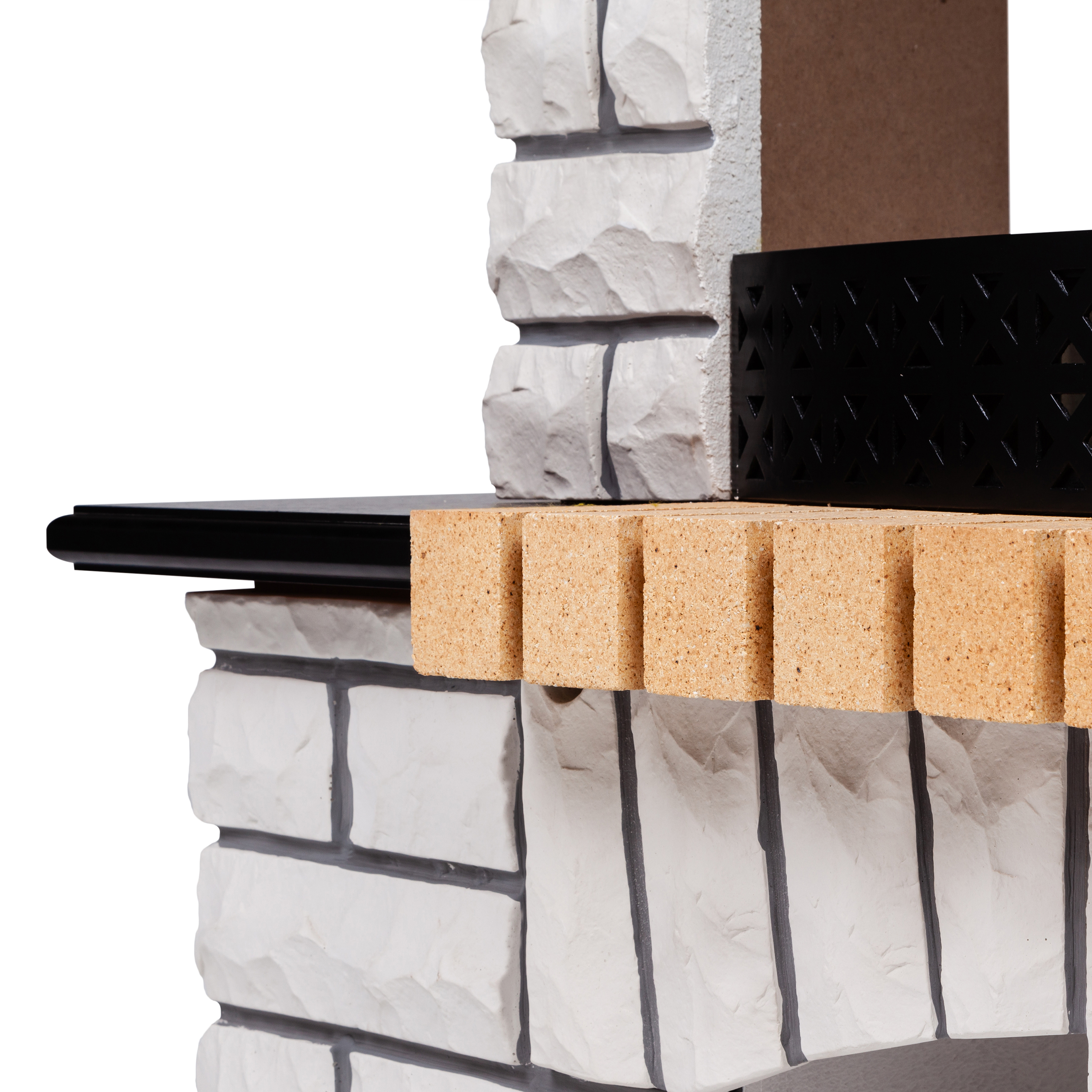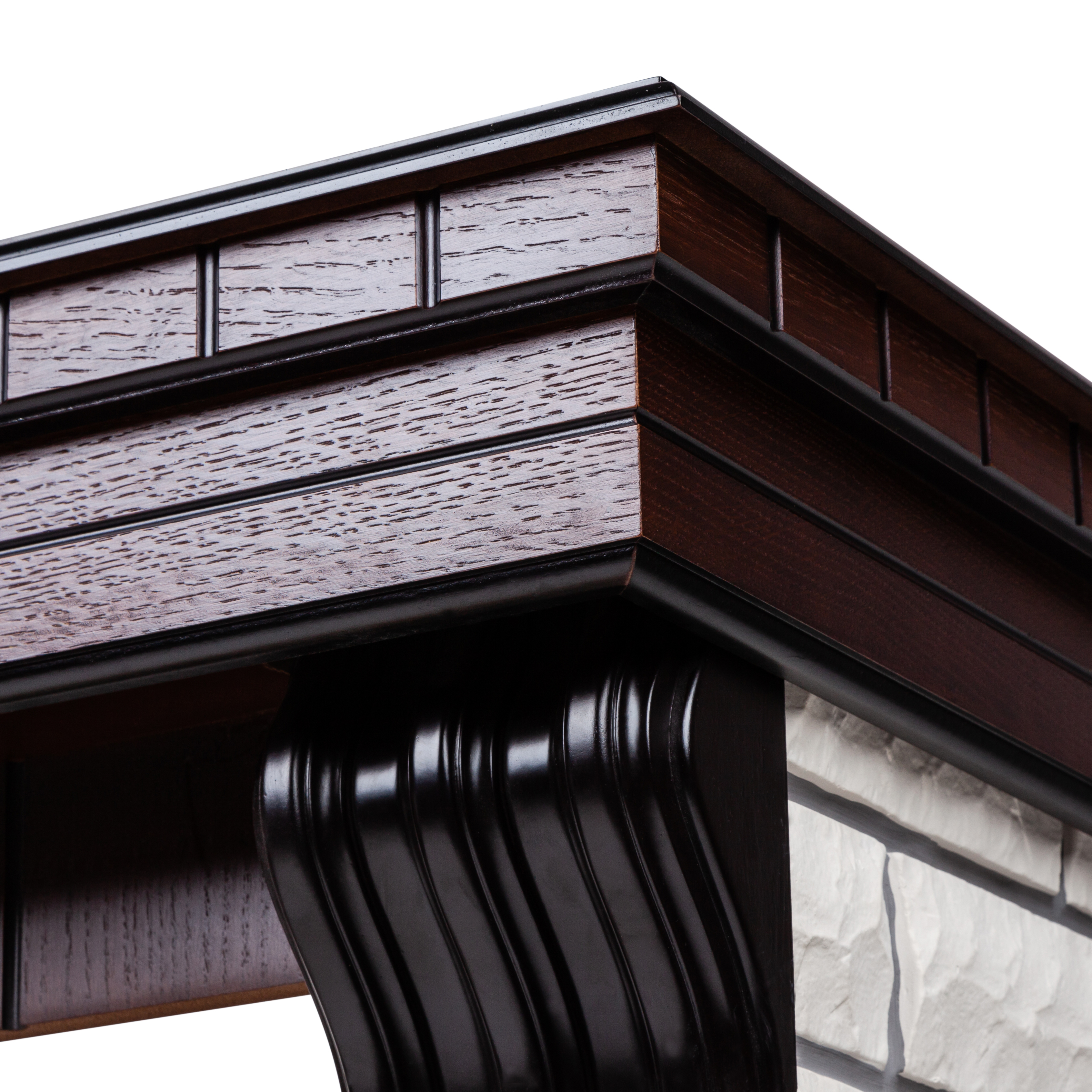 Портал в стиле ""кантри"". Изготовлен из искусственного камня и шпонированного МДФ. Камень белого цвета. Предназначен для очагов 25,5 дюймов.