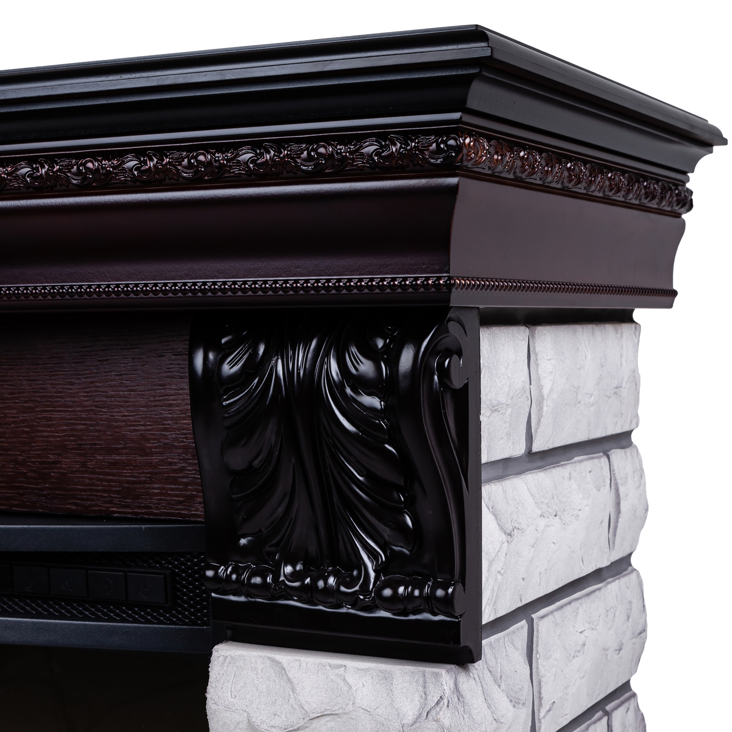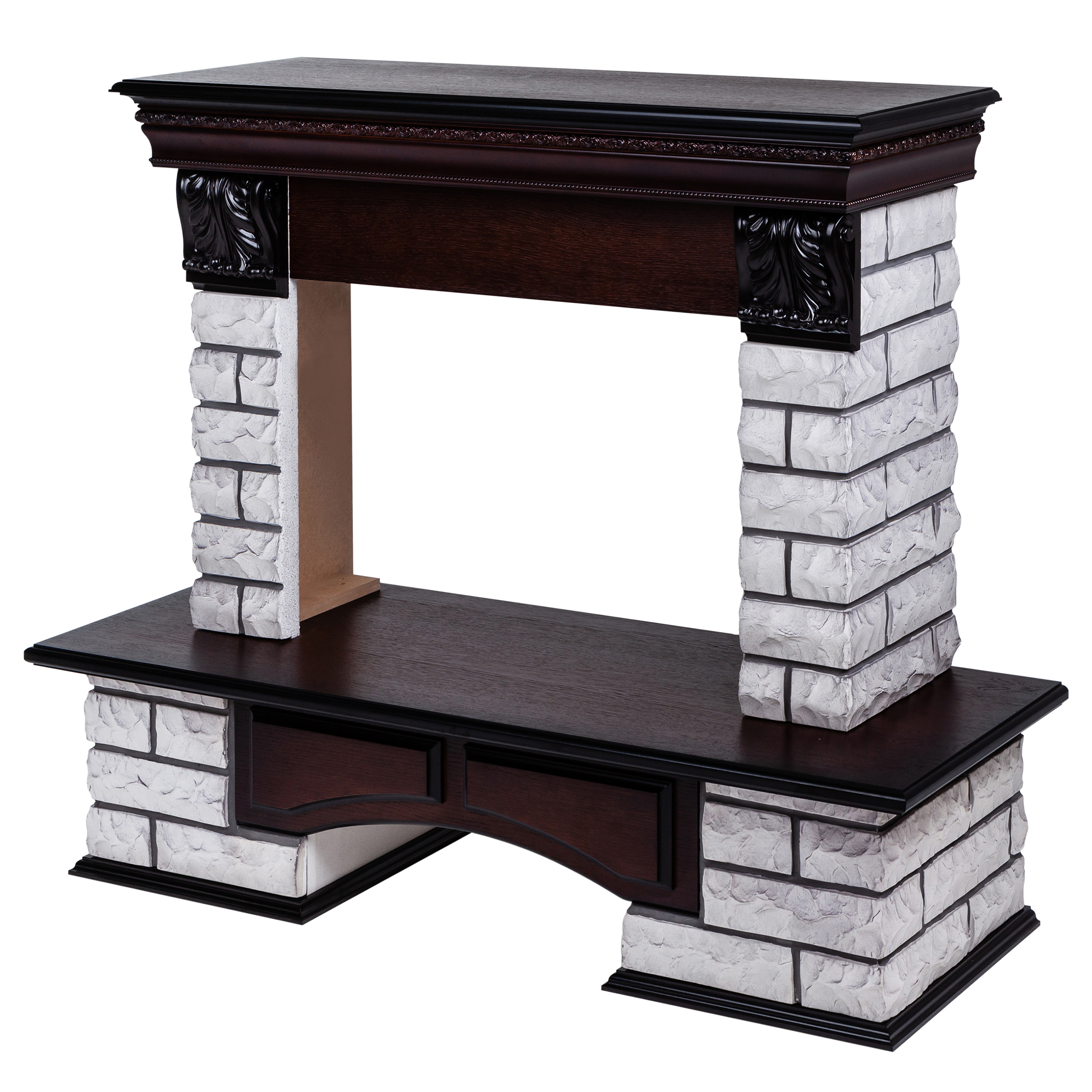 Портал в стиле ""кантри"". Изготовлен из искусственного камня и шпонированного МДФ. Камень серого цвета. Предназначен для очагов 25,5 дюймов.