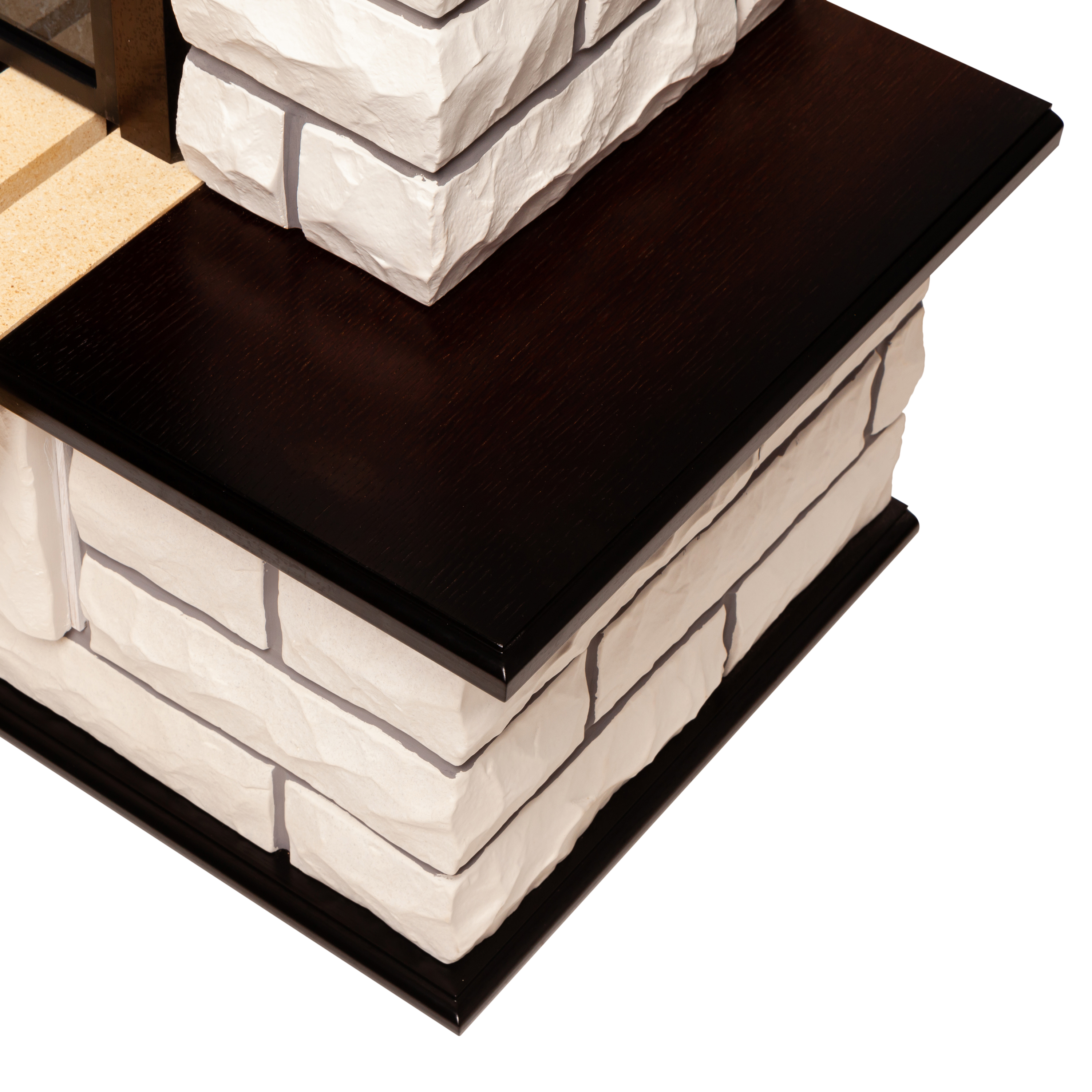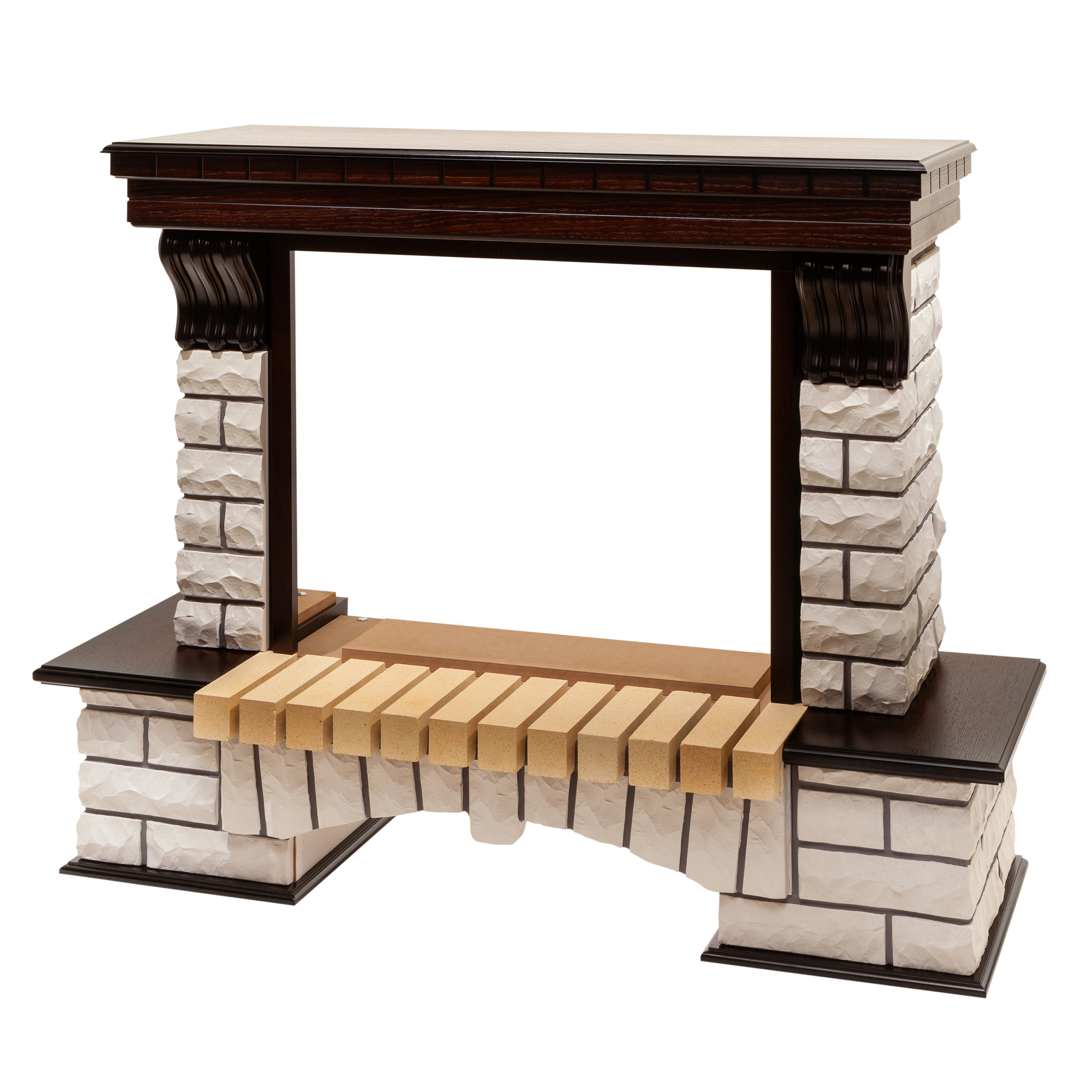 Портал в стиле ""кантри"". Изготовлен из искусственного камня и шпонированного МДФ. Камень белого цвета. Предназначен для популярных очагов 26 дюймов.