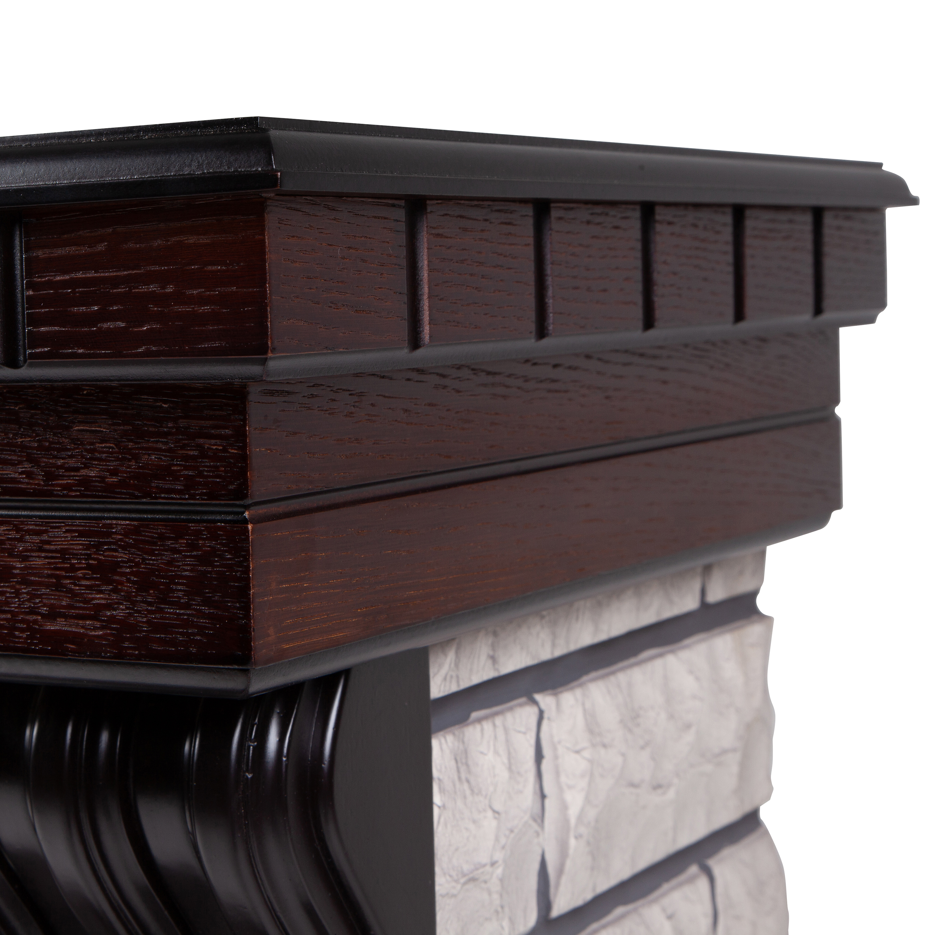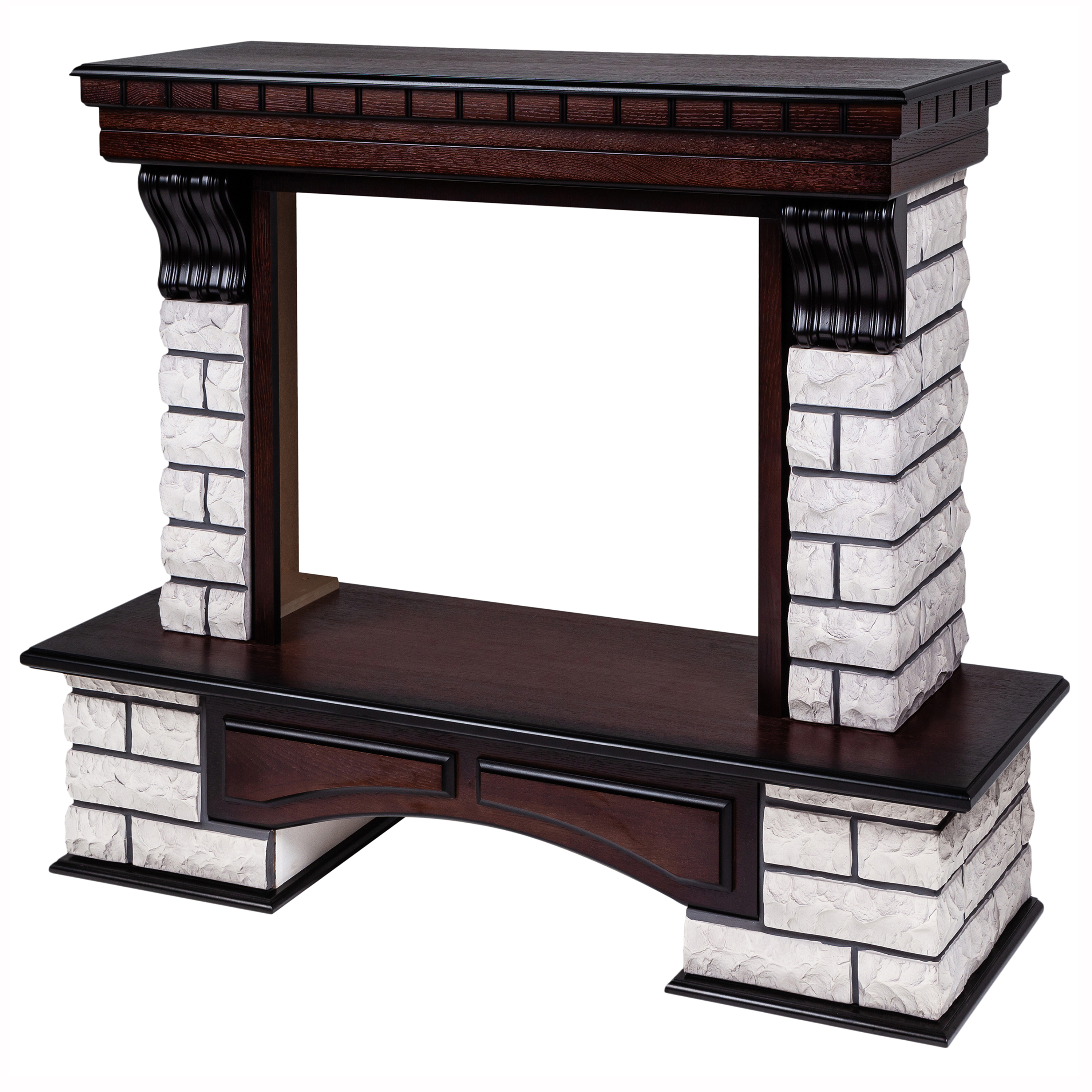 Портал в стиле ""кантри"". Изготовлен из искусственного камня и шпонированного МДФ. Камень белого цвета. Предназначен для популярных очагов 26 дюймов.