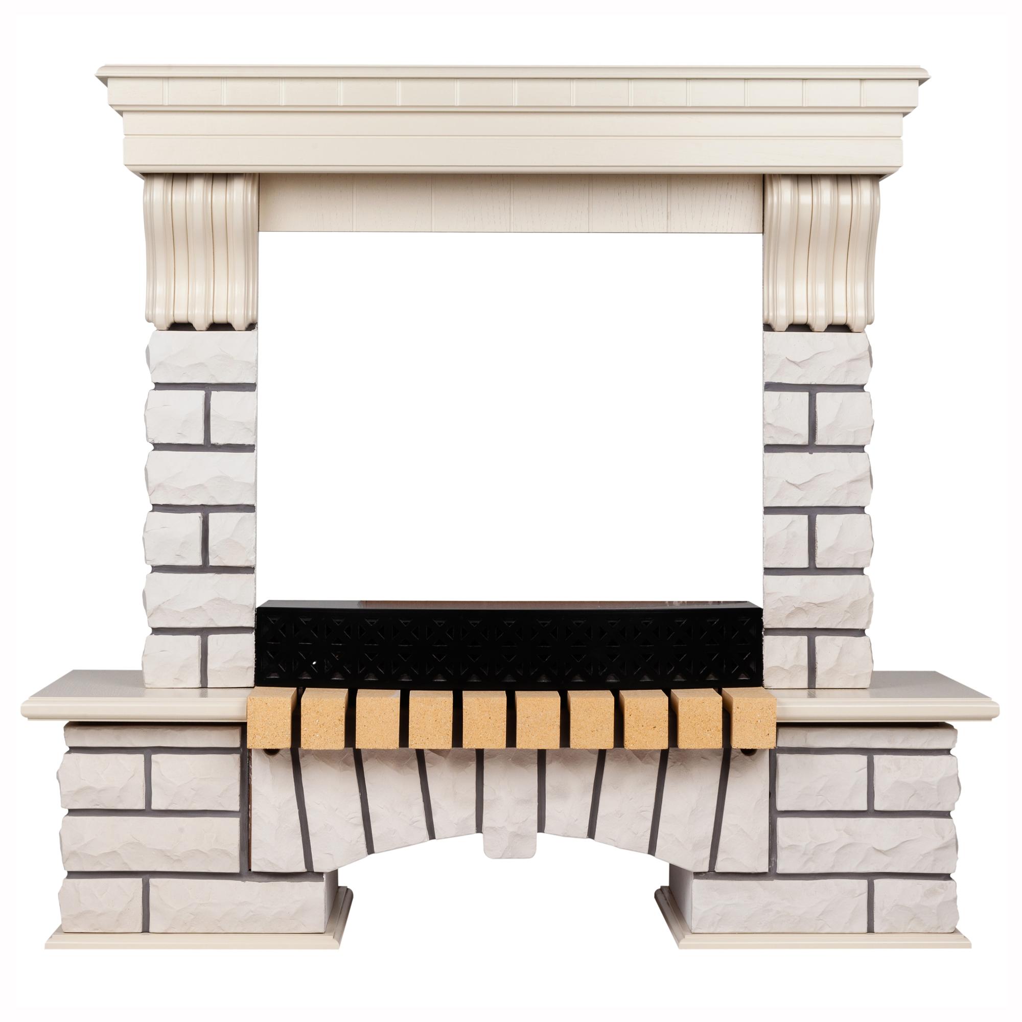 Портал в стиле ""кантри"". Изготовлен из искусственного камня и шпонированного МДФ. Камень белого цвета. Предназначен для очагов 25,5 дюймов. .