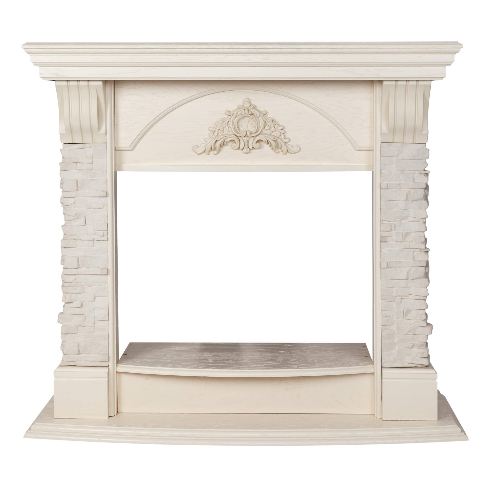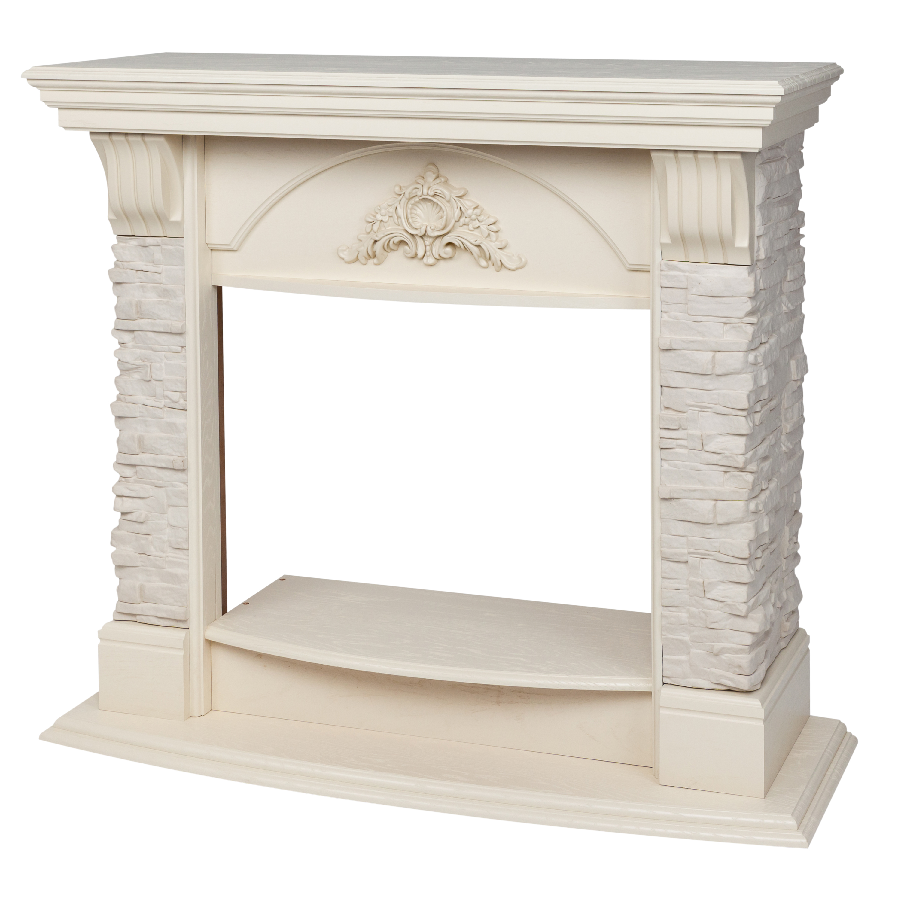 Портал в стиле ""кантри"". Изготовлен из искусственного камня и шпонированного МДФ. Камень белого цвета. Предназначен для очагов 25,5 дюймов. .