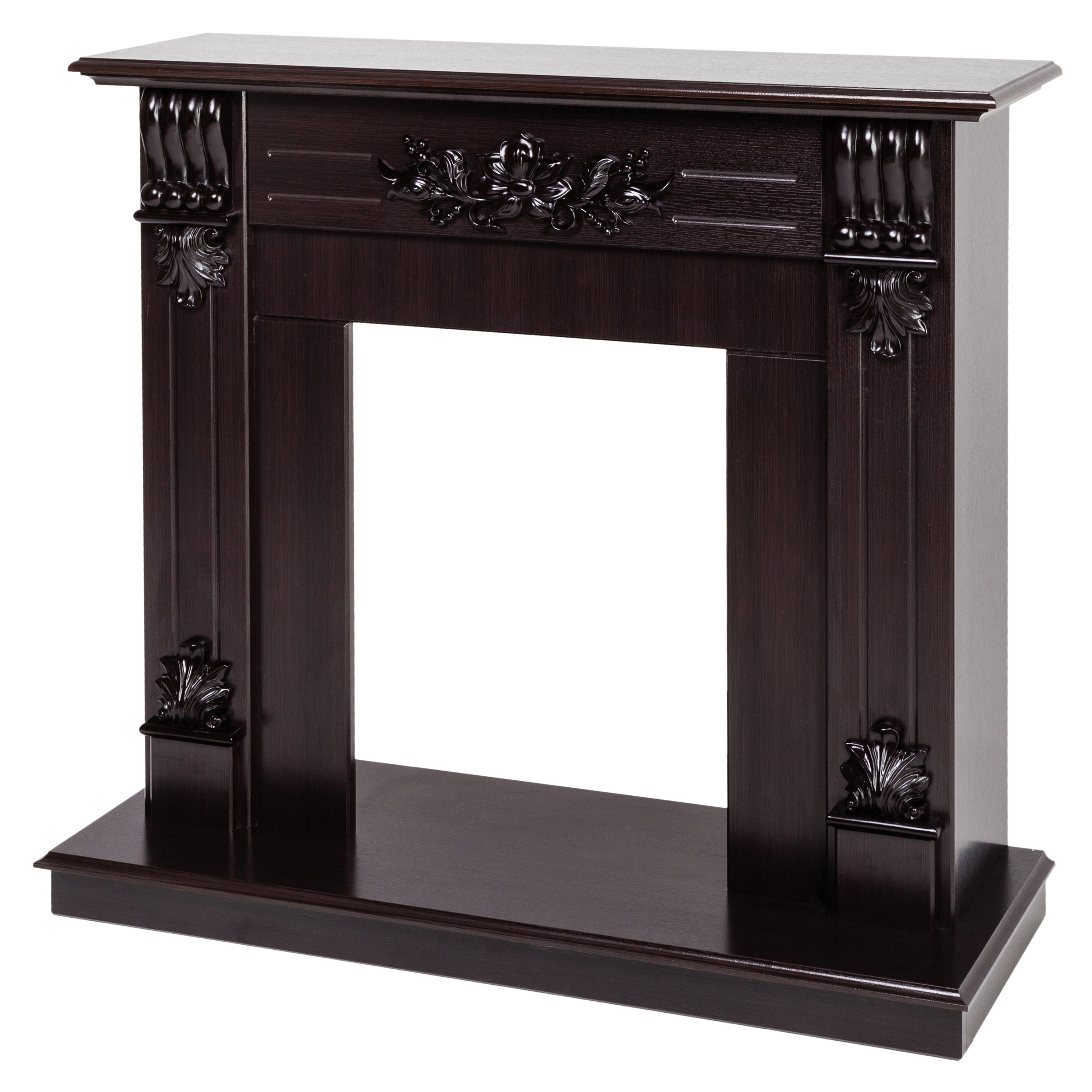 Портал выполнен в высококачественном эко-шпоне. Подходит для стандартных очагов. Камин имеет компактный размер и достаточно универсален в выборе стиля оформления помещения. Модель очень надежная и имеет высокие износостойкие характеристики.