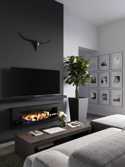Плюс навесной модели в том, что для нее не нужно искать свободное место в комнате и сокращать полезную площадь. Пламенный декор вешается на стену: на обратной стороне корпуса есть стандартные отверстия для крепежа. Остается залить в топку биотопливо, воспользоваться зажигалкой с длинным носиком – и огненная картина наполнит интерьер уютом и теплом.