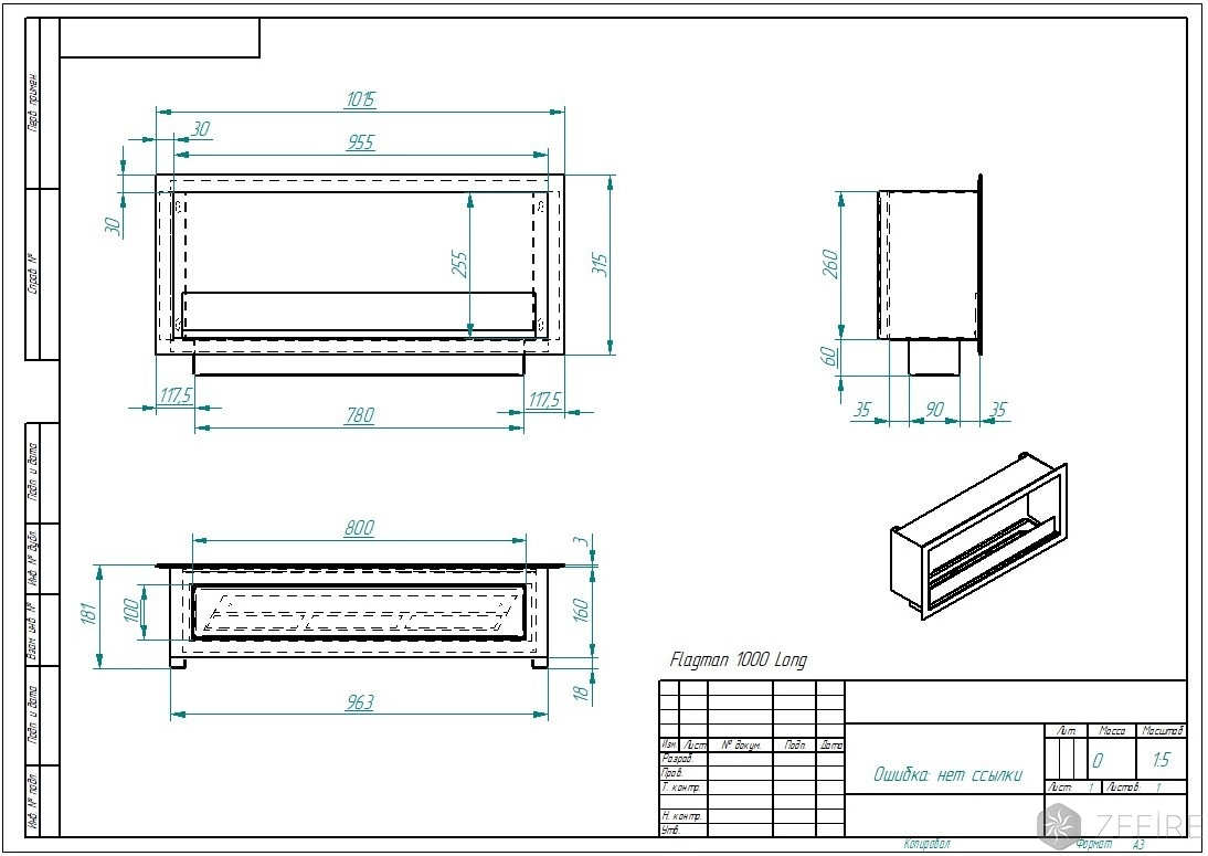 Биокамин Zefire Flagman 1000 Long со стемалитом
