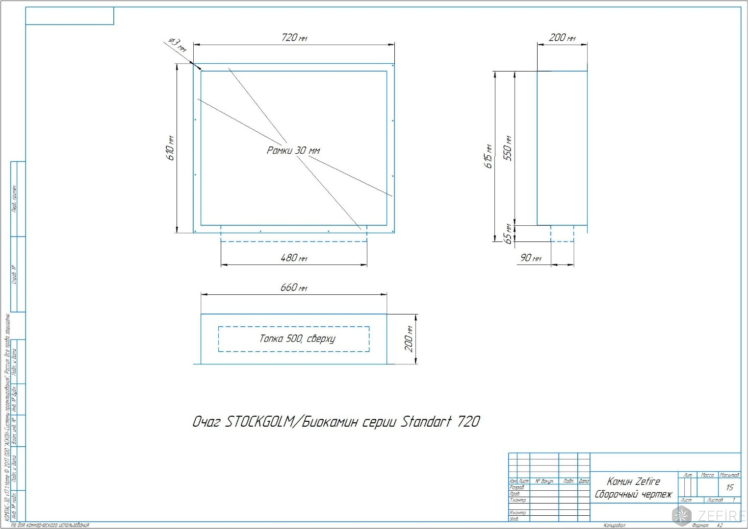 Биокамин Zefire Standart 720 для встраивания в портал со стемалитом