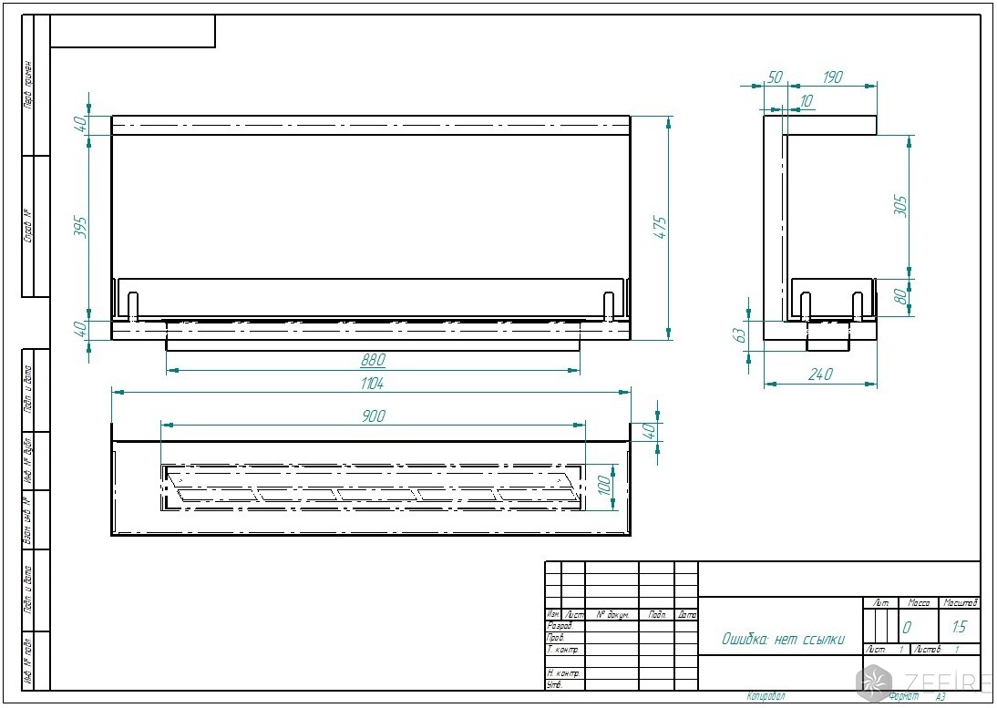 Биокамин Zefire торцевой Standart 1100