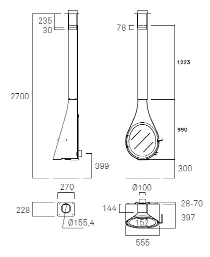 - Диаметр дымохода: 150 мм