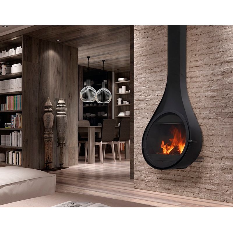 Очарование формы: Mini Drop – это пристенный подвесной камин с обтекаемой формой, спроектированный с вертикальными линиями и округлыми очертаниями. Он не только обогревает ваше пространство, но и становится эстетическим центром вашего интерьера. Его черный корпус, покрытый термостойкой краской, подчеркивает стиль и современность.