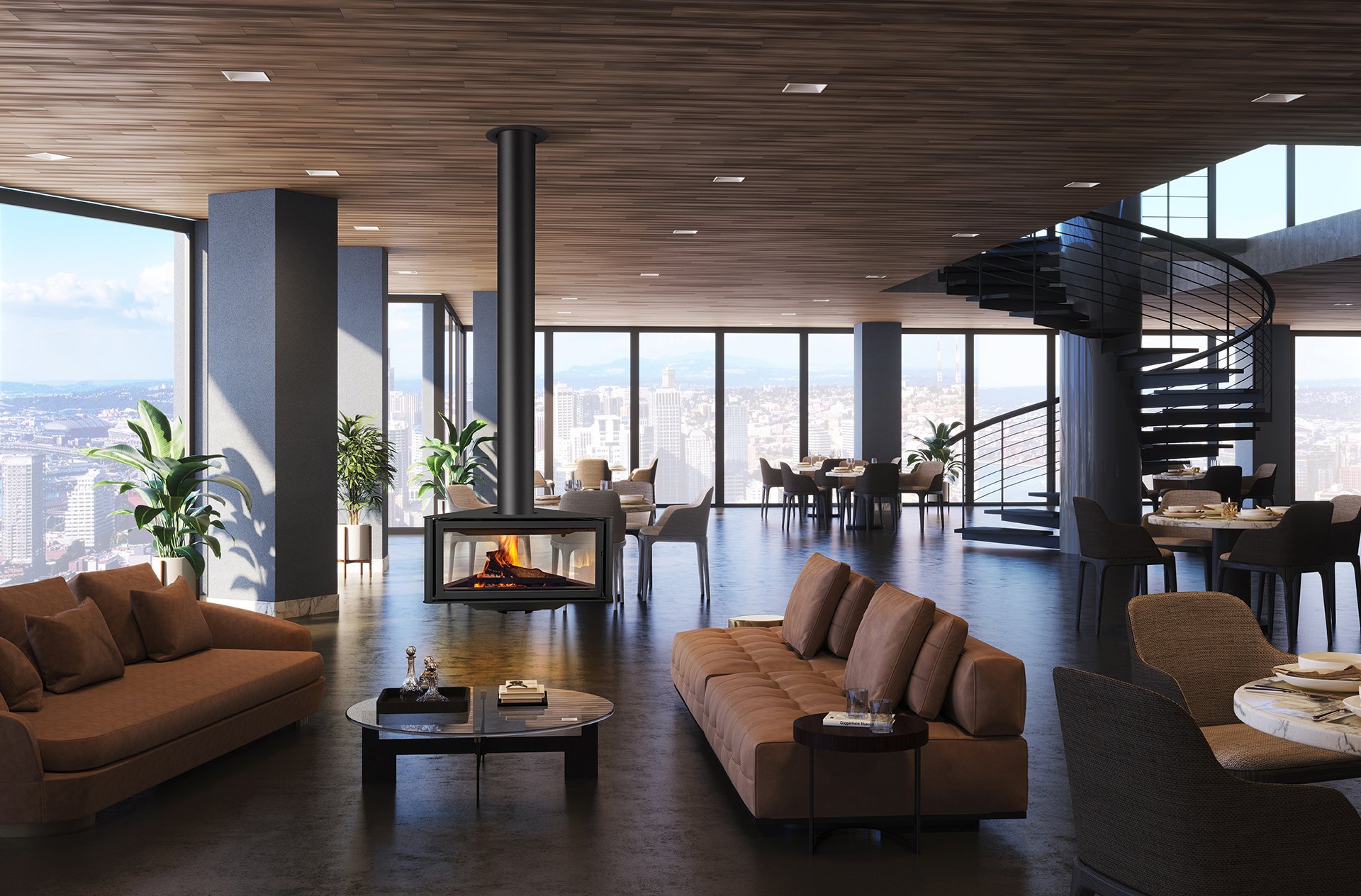 - Трехстороннее остекление: Позволяет наслаждаться пламенем с разных ракурсов, создавая удивительный обзор на 360 градусов.