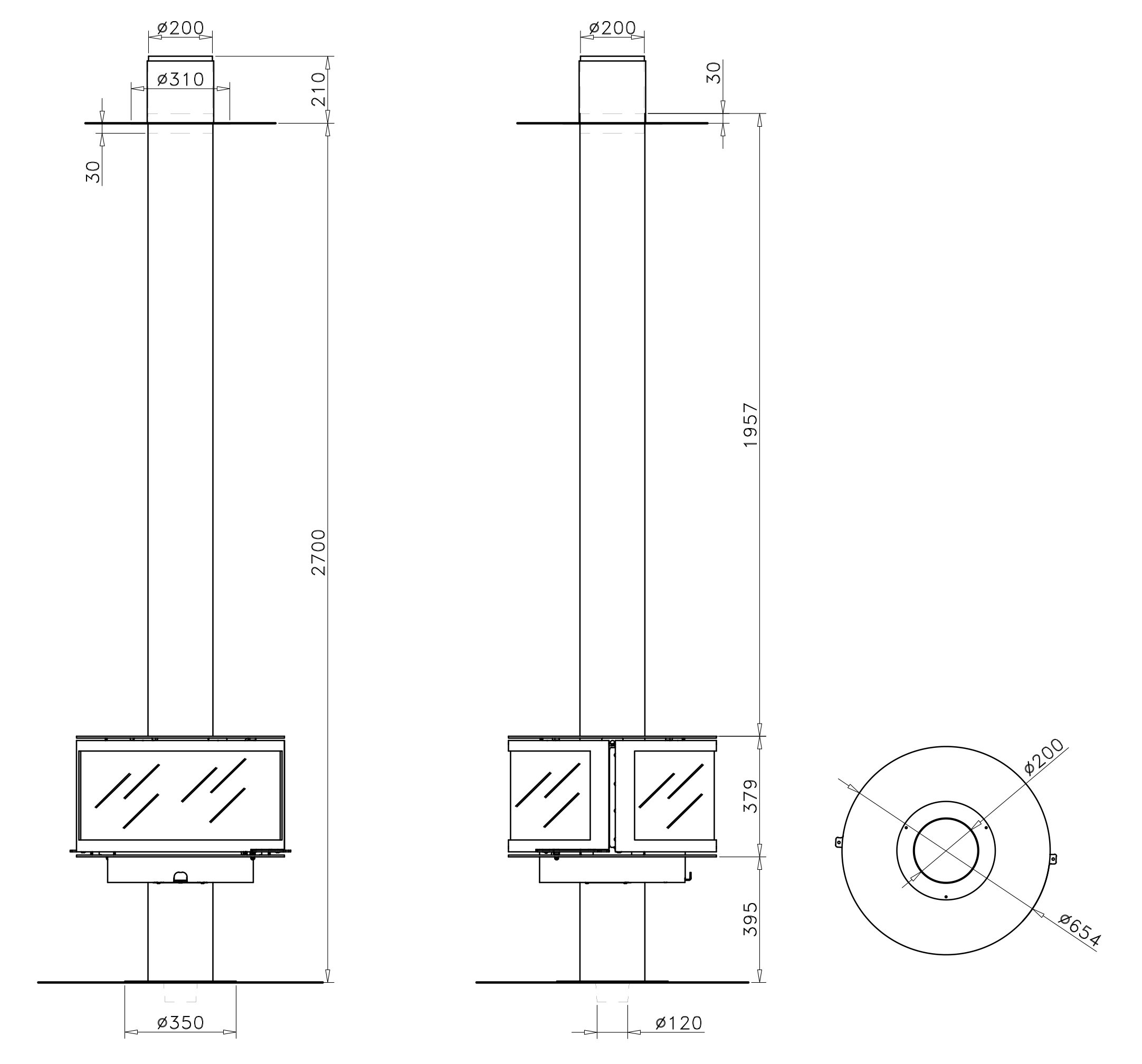 - Диаметр дымохода: 200 мм