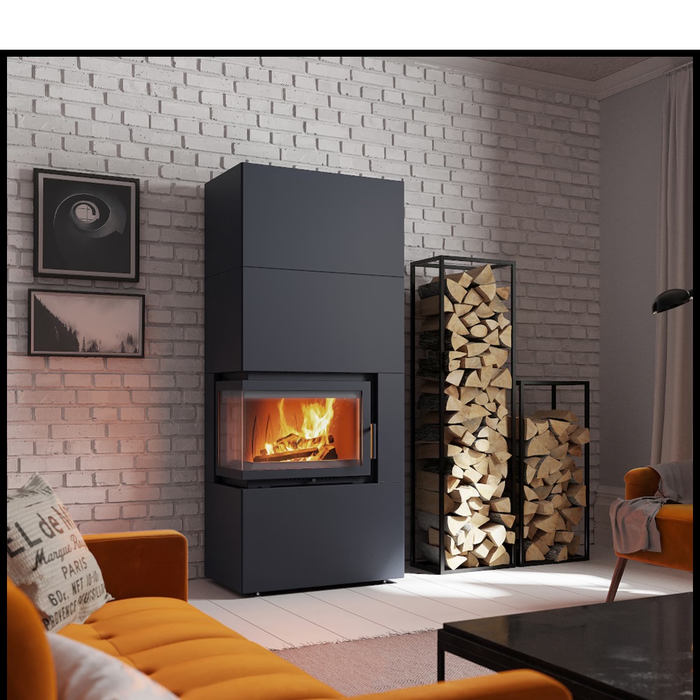 Каминокомплект SIMPLE Box черный с топкой BS, левый угол