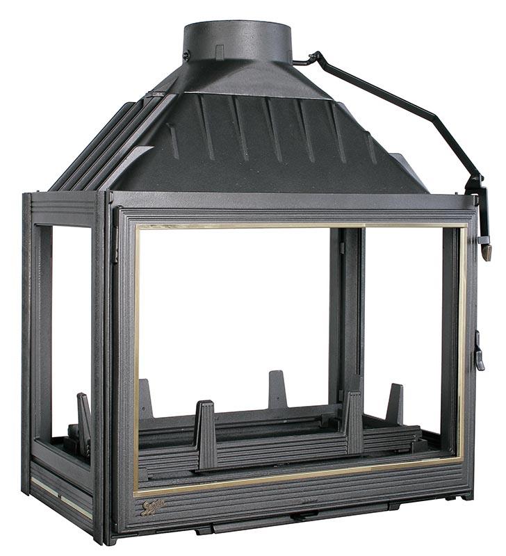 Данная модель имеет четыре стекла (две двери) что позволяет использовать её в центральностоящих каминах.