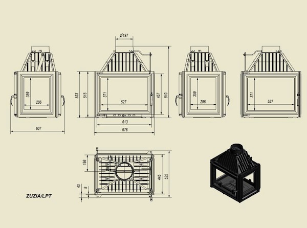 Чугунная топка Kratki Zuzia (стекло с четырех сторон)