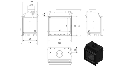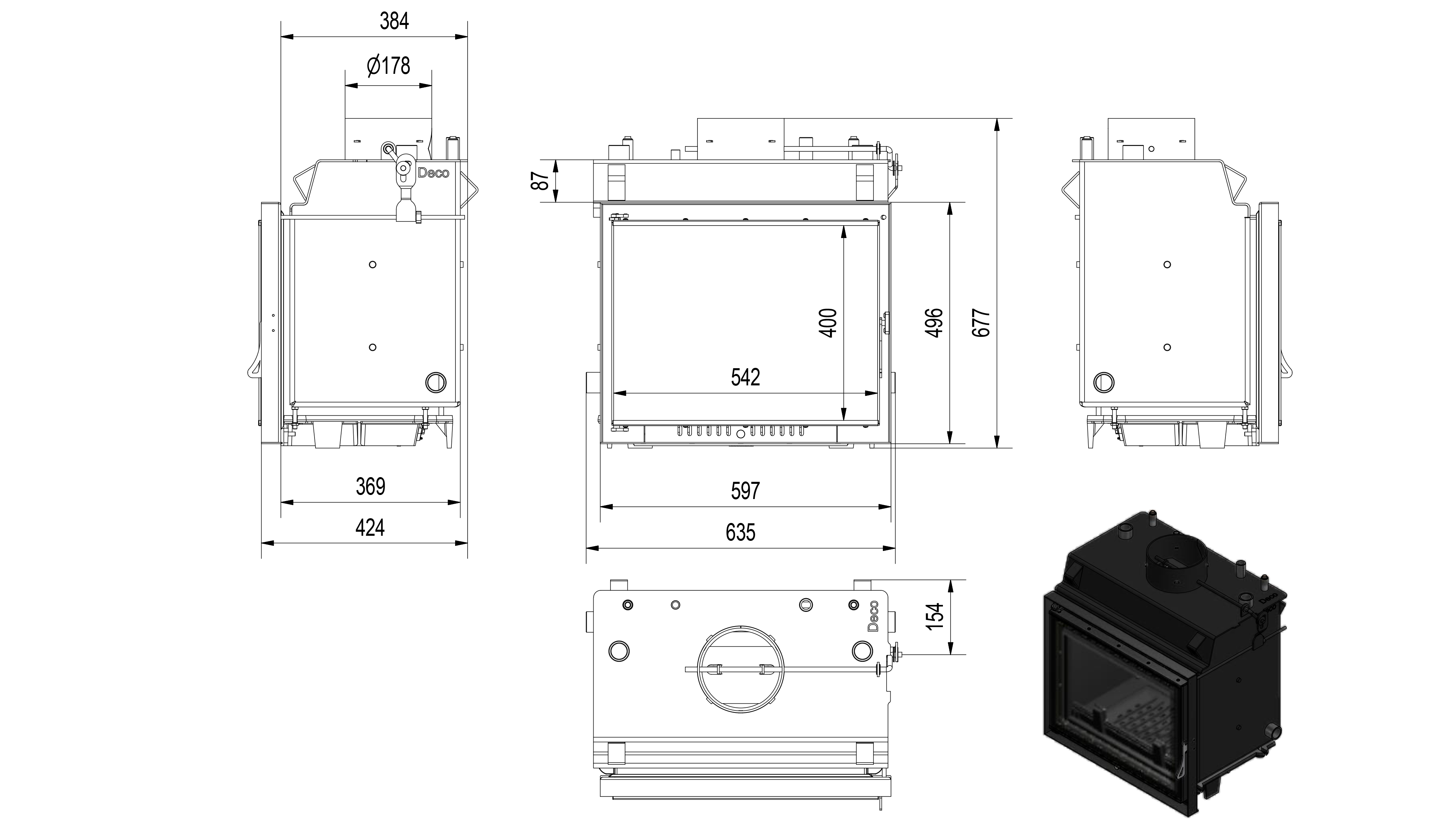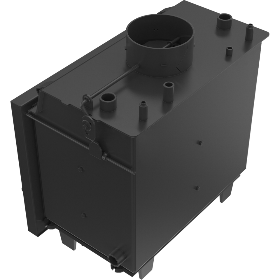 Данная каминная топка предназначена для работы в системе водяного отопления и интенсивного горения. Номинальная мощность топки (воздухогрейная) 9кВт, мощность водяного обогрева в среднем 6 кВт. Максимальное давление в система 2 бар. Топка работает как в открытых так и в закрытых системах. Емкость воды имеет объем 18 литра.