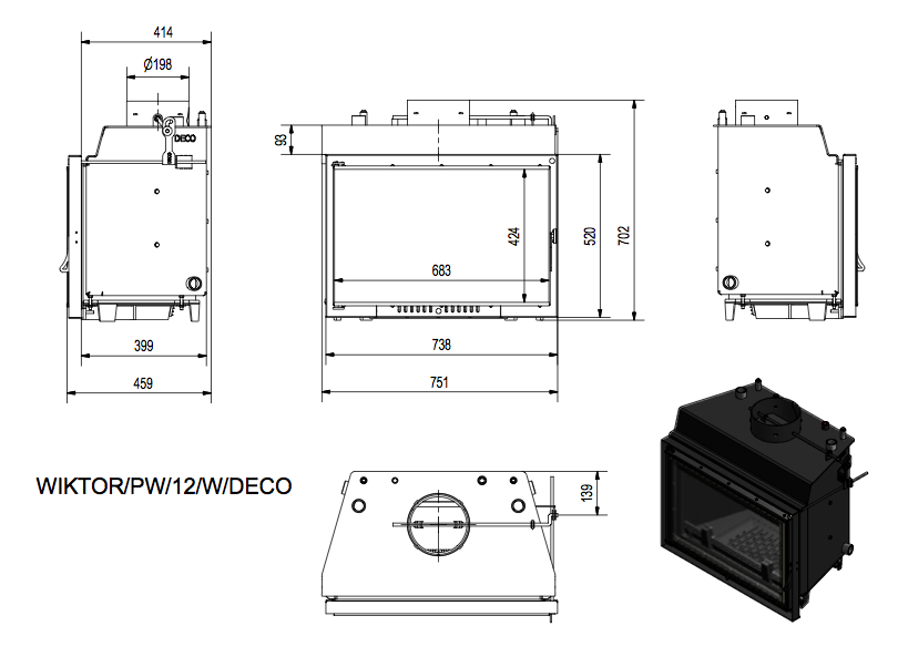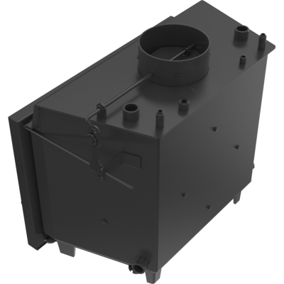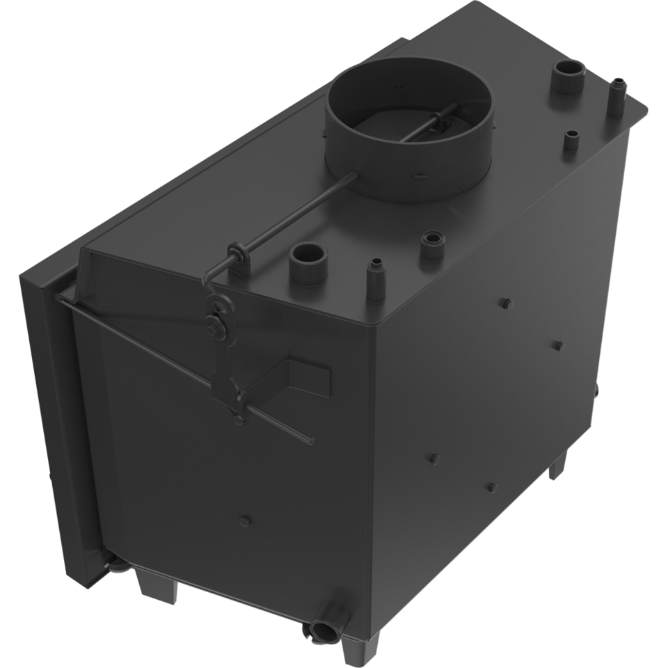 Данная каминная топка предназначена для работы в системе водяного отопления и интенсивного горения. Номинальная мощность топки (воздухогрейная) 12кВт, мощность водяного обогрева в среднем 8 кВт. Максимальное давление в система 2 бар. Топка работает как в открытых так и в закрытых системах. Емкость воды имеет объем 17 литра.