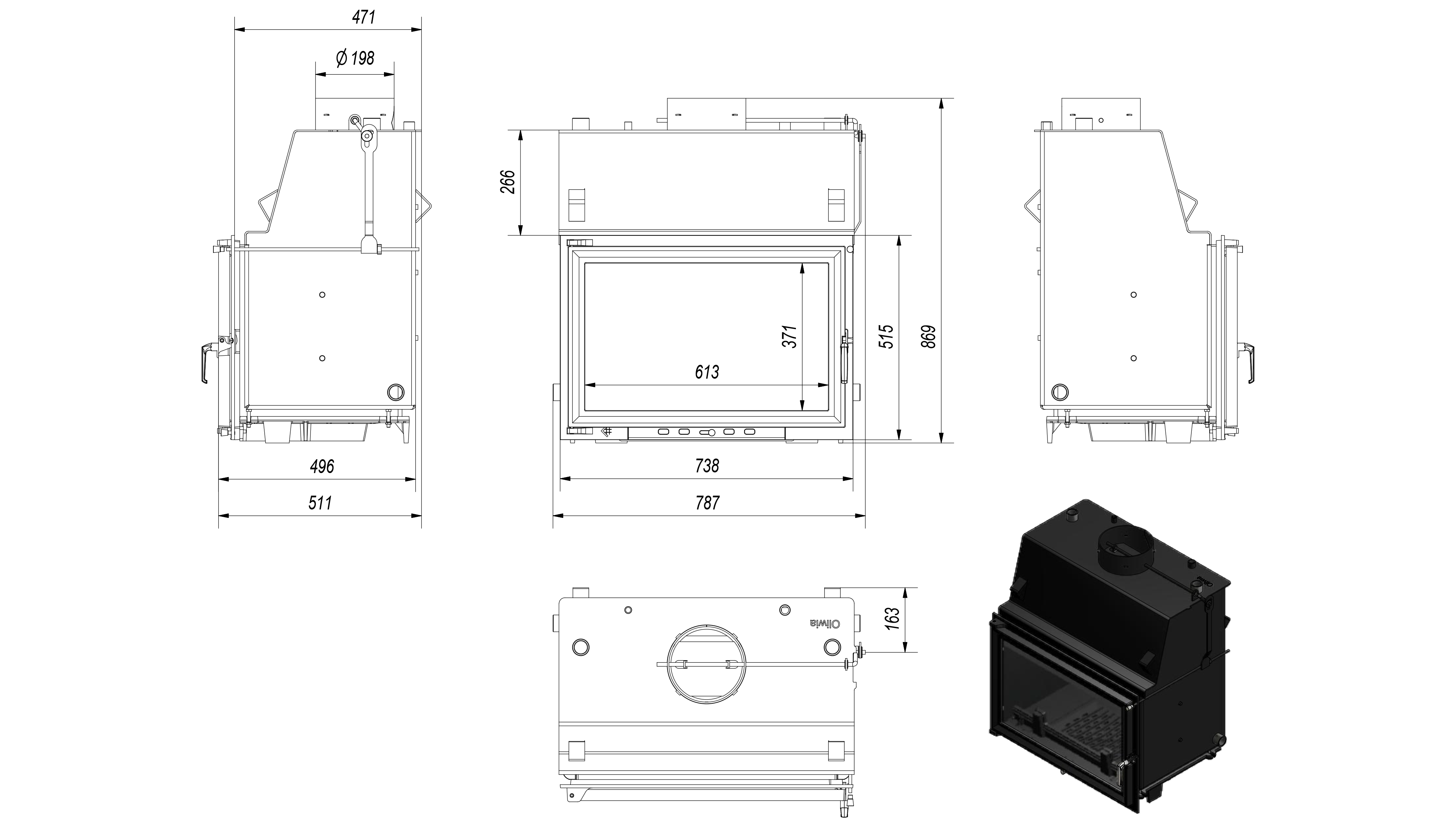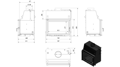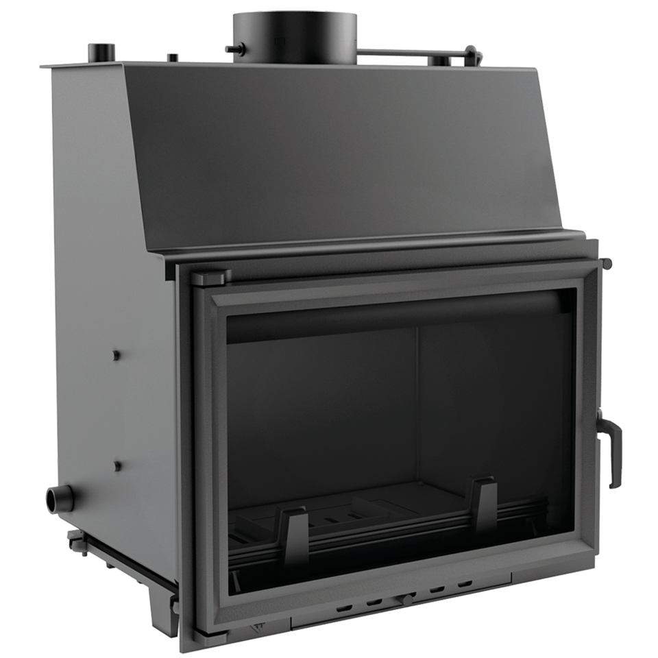 Данная каминная топка предназначена для работы в системе водяного отопления и интенсивного горения. Номинальная мощность топки (воздухогрейная) 17 кВт, мощность водяного обогрева в среднем 13 кВт. Максимальное давление в система 2 бар. Топка работает как в открытых так и в закрытых системах. Емкость воды имеет объем 44,5 литров.
