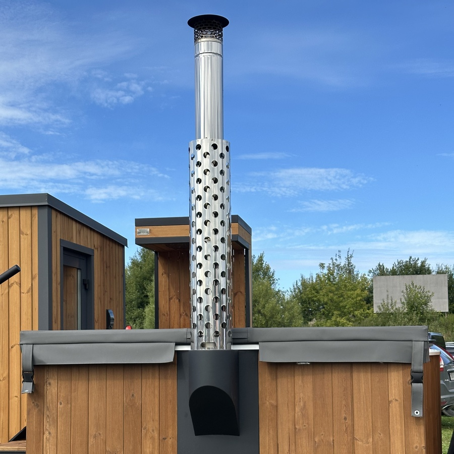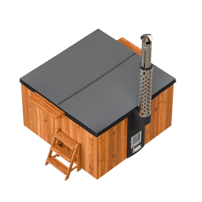 Купель можно использовать на улице при любой погоде. Изготовленная по нашему эксклюзивному проекту встроенная печь POLAR SPA мощностью 35кВт нагревает воду за 1,5-2 часа до комфортной температуры. Печь абсолютно безопасна – защитный экран на дымоходе, жаропрочное стекло, никаких острых углов, а все технические коммуникации спрятаны внутри конструкции.
