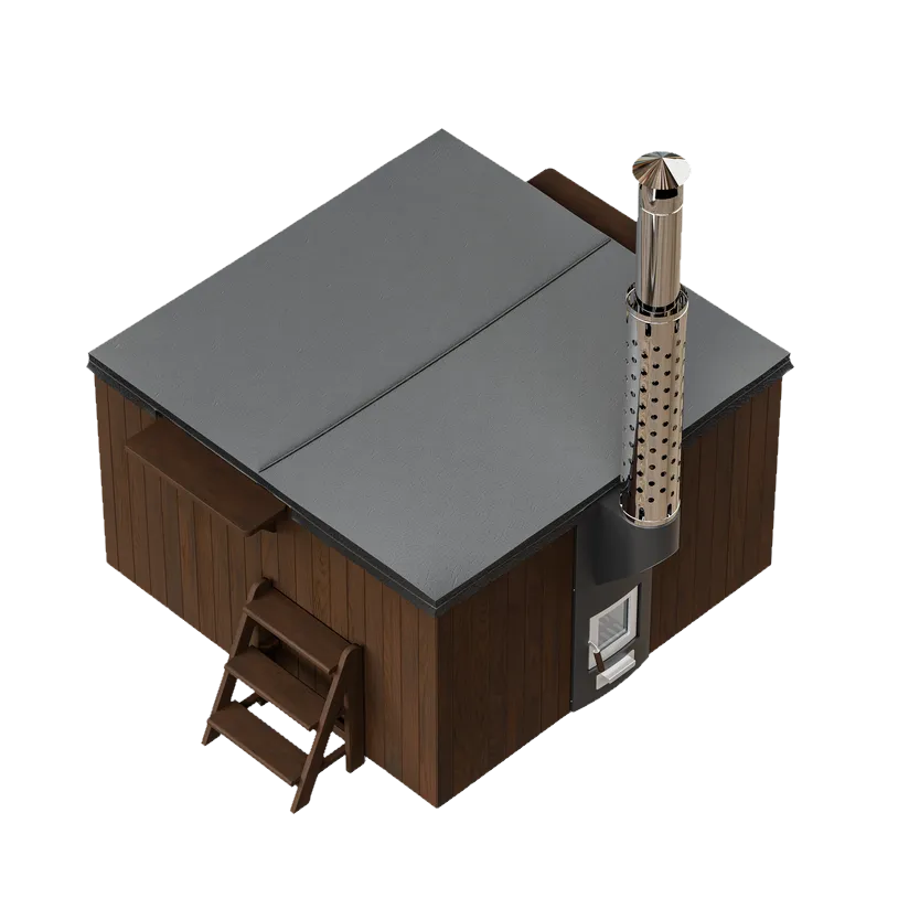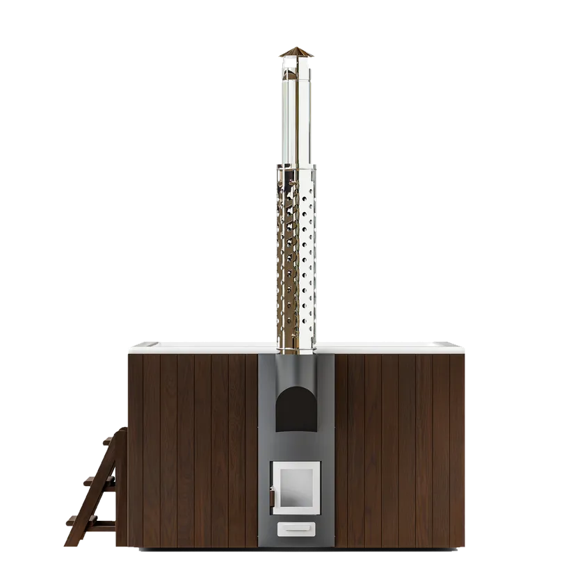 Купель можно использовать на улице при любой погоде. Изготовленная по нашему эксклюзивному проекту встроенная печь POLAR SPA мощностью 35кВт нагревает воду за 1,5-2 часа до комфортной температуры. Печь абсолютно безопасна – защитный экран на дымоходе, жаропрочное стекло, никаких острых углов, а все технические коммуникации спрятаны внутри конструкции.
