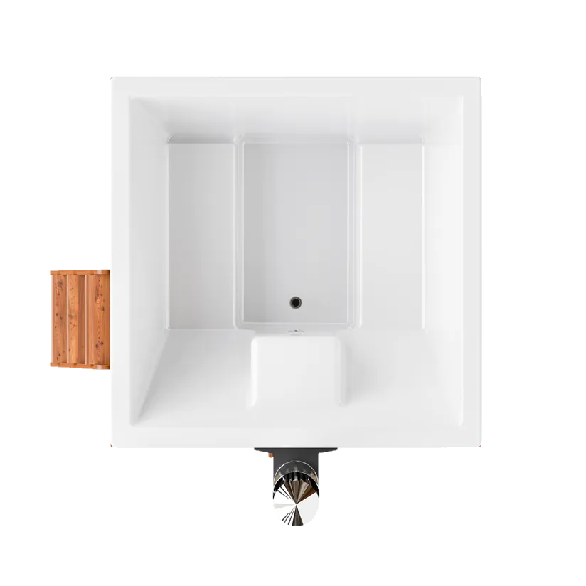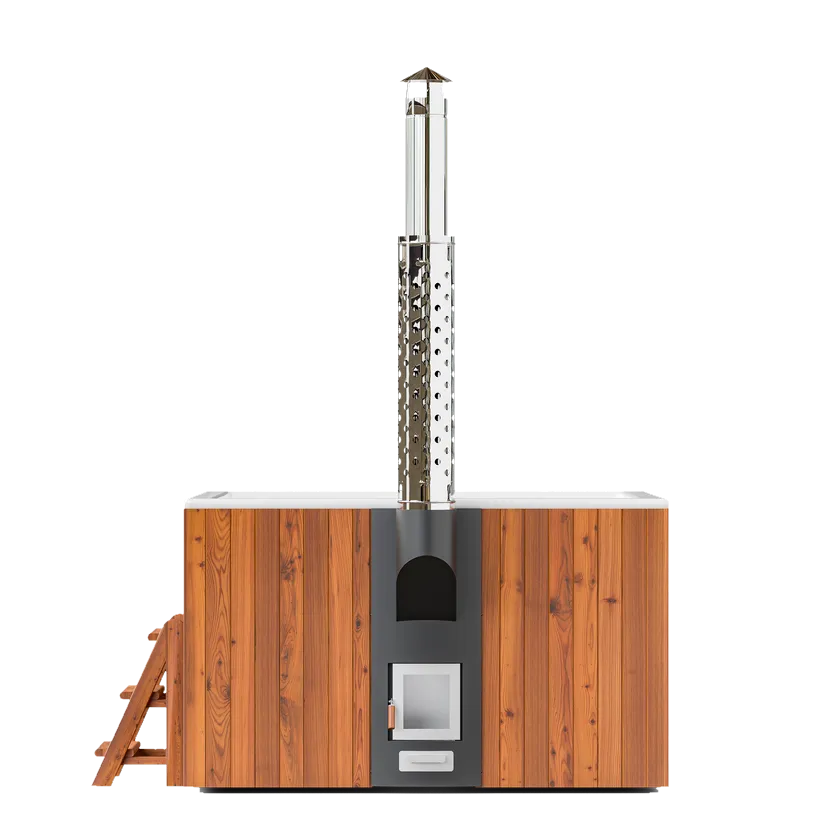 Купель можно использовать на улице при любой погоде. Изготовленная по нашему эксклюзивному проекту встроенная печь POLAR SPA мощностью 35кВт нагревает воду за 1,5-2 часа до комфортной температуры. Печь абсолютно безопасна – защитный экран на дымоходе, жаропрочное стекло, никаких острых углов, а все технические коммуникации спрятаны внутри конструкции.
