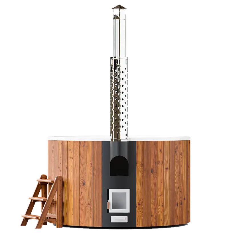 Купель можно использовать на улице при любой погоде. Изготовленная по нашему эксклюзивному проекту встроенная печь POLAR SPA мощностью 35кВт нагревает воду за 1,5-2 часа до комфортной температуры. Печь абсолютно безопасна – защитный экран на дымоходе, жаропрочное стекло, никаких острых углов, а все технические коммуникации спрятаны внутри конструкции.