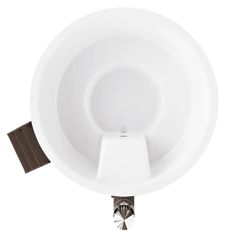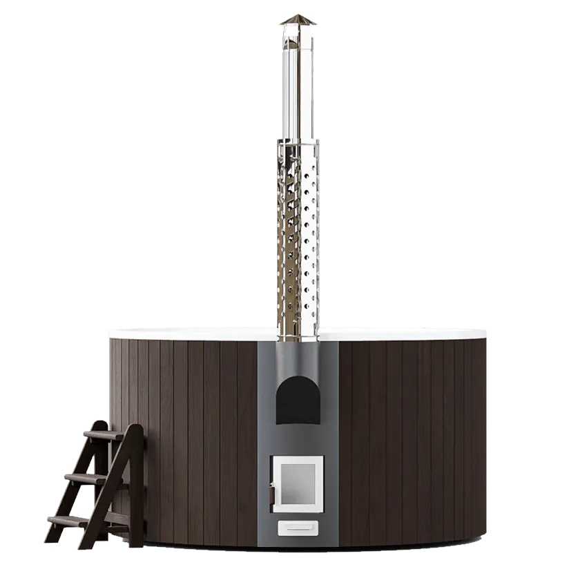Модель полностью оправдывает свое название. Функциональность и дизайн изделия призваны сделать отдых премиальным. Чаша выполнена из высококлассного многослойного композита, а дополнительные защитные и декоративные свойства ей придает инновационное покрытие — гелькоут немецкой компании BUFA. Обшивку изготавливаем из экологичной термососны приятных оттенков. Выбирайте темный или светлый вариант, чтобы купель органично вписалась в дизайн окружающего пространства.