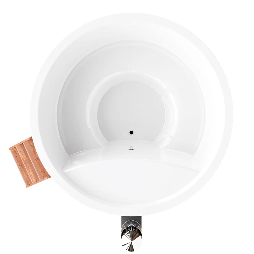Модель полностью оправдывает свое название. Функциональность и дизайн изделия призваны сделать отдых премиальным. Чаша выполнена из высококлассного многослойного композита, а дополнительные защитные и декоративные свойства ей придает инновационное покрытие — гелькоут немецкой компании BUFA. Обшивку изготавливаем из экологичной термососны приятных оттенков. Выбирайте темный или светлый вариант, чтобы купель органично вписалась в дизайн окружающего пространства.