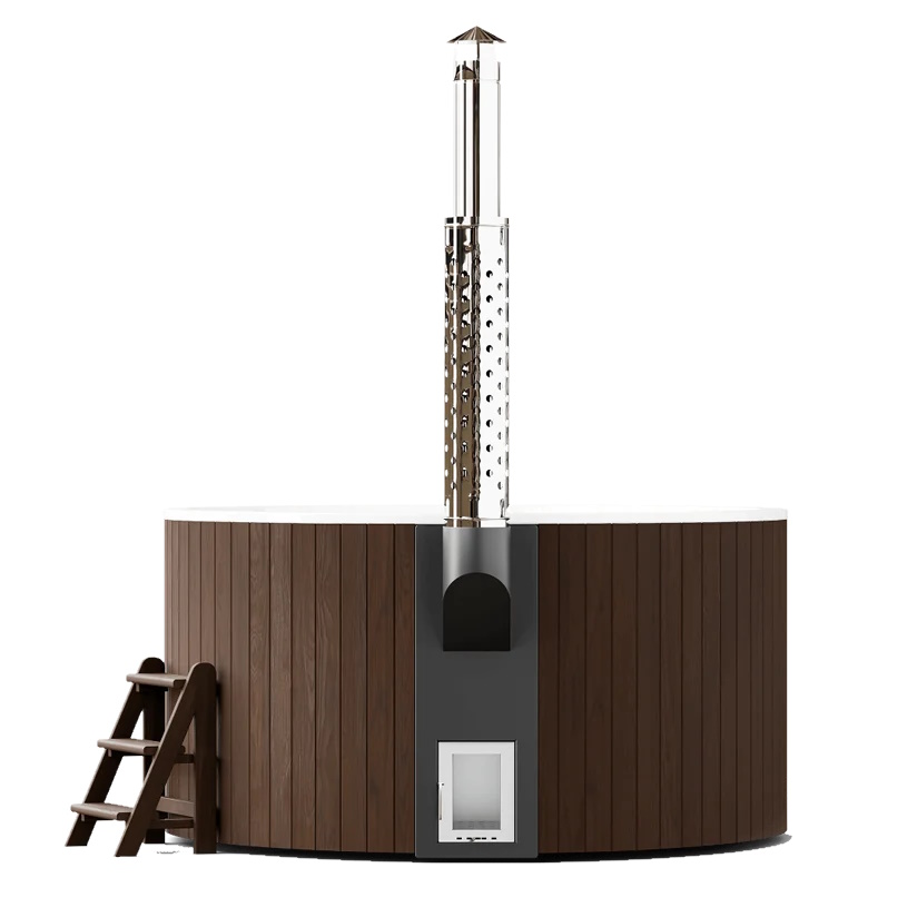 Модель полностью оправдывает свое название. Функциональность и дизайн изделия призваны сделать отдых премиальным. Чаша выполнена из высококлассного многослойного композита, а дополнительные защитные и декоративные свойства ей придает инновационное покрытие — гелькоут немецкой компании BUFA. Обшивку изготавливаем из экологичной термососны приятных оттенков. Выбирайте темный или светлый вариант, чтобы купель органично вписалась в дизайн окружающего пространства.