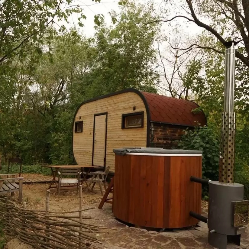 Для более удобного входа в воду в комплекте идет небольшая лестница. Дополните конструкцию специальной полочкой, чтобы брать в купель любимые напитки и отдыхать с максимальным комфортом.