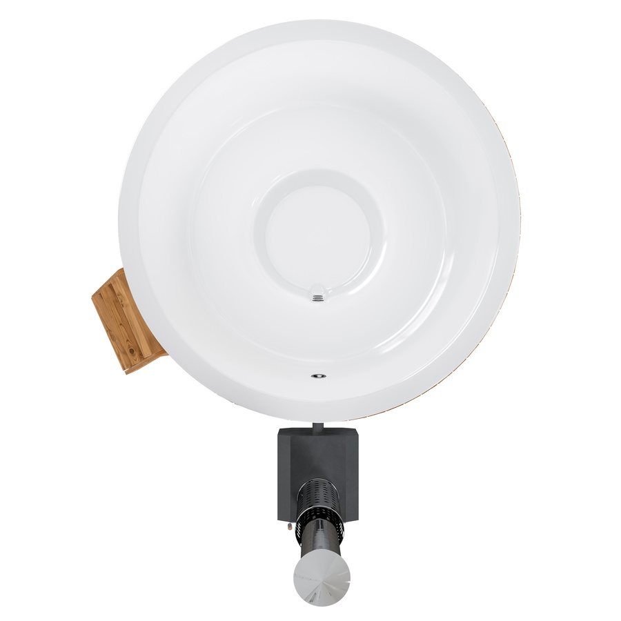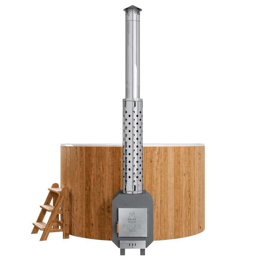 Эта модель комплектуется внешней печью Polarspa мощностью 40кВт. Всего 1,5-2 часа – и вода (1300 л.) нагрета до комфортной температуры.