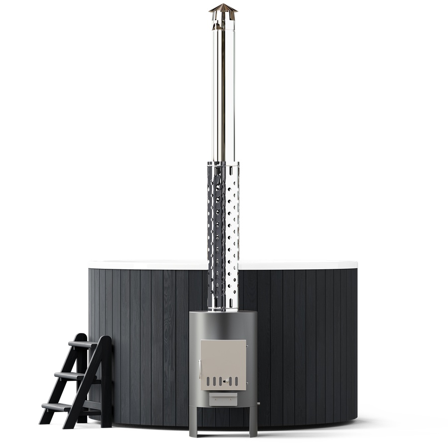 Эта модель комплектуется внешней печью Polarspa мощностью 40кВт. Всего 1,5-2 часа – и вода (1300 л.) нагрета до комфортной температуры.