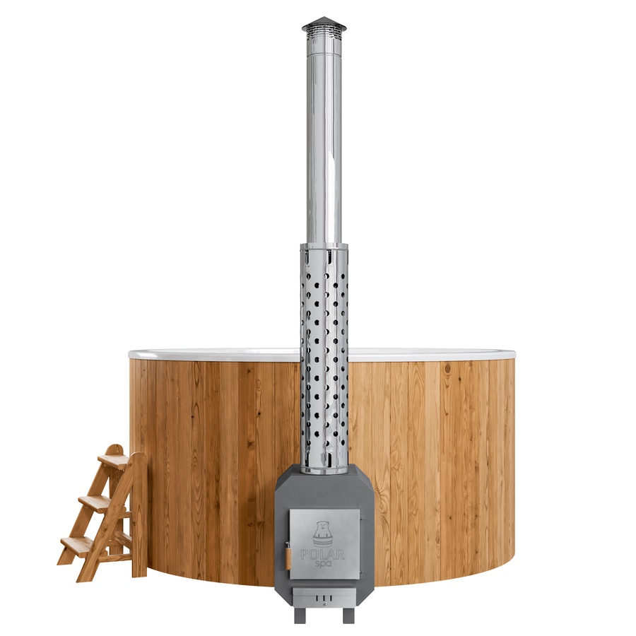 Эта модель комплектуется внешней печью Polarspa мощностью 40кВт. Всего 1,5-2 часа – и вода (1700 л.) нагрета до комфортной температуры.