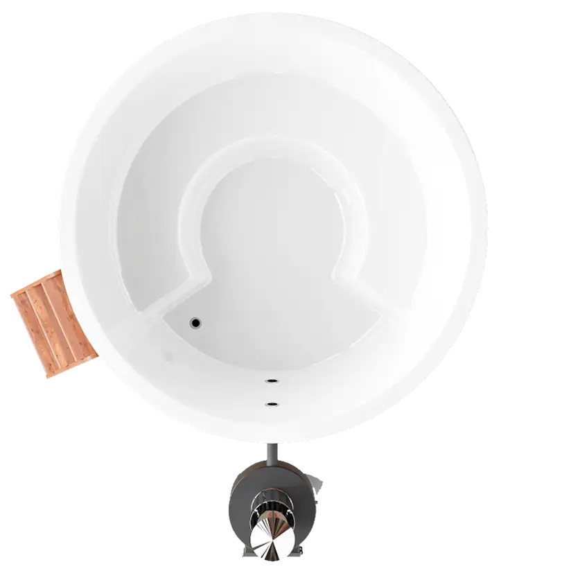 Для более удобного входа в воду в комплекте идет небольшая лестница. Дополните конструкцию специальной полочкой, чтобы брать в купель любимые напитки и отдыхать с максимальным комфортом.