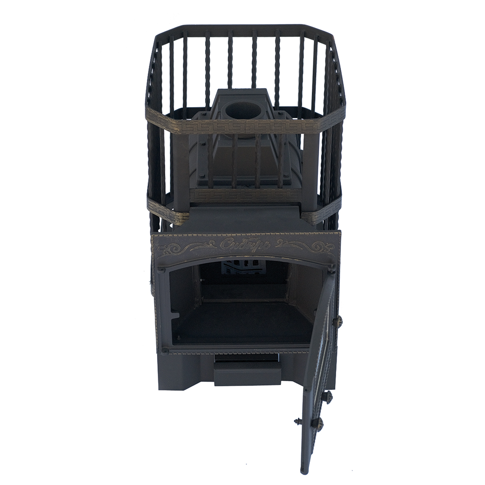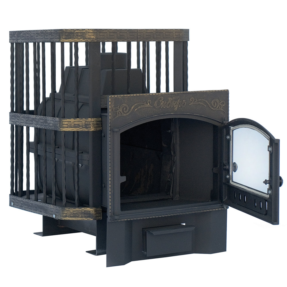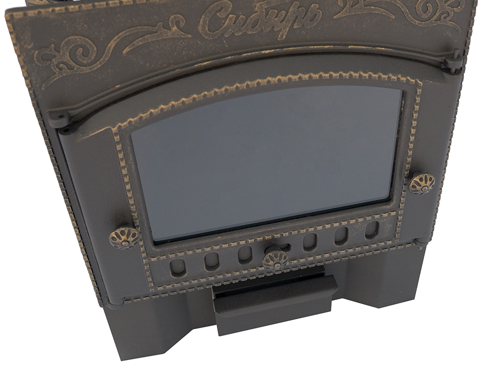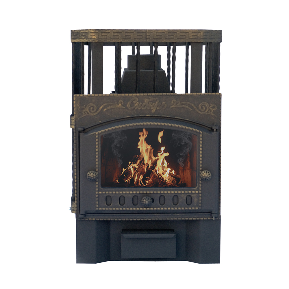 Чугунная банная печь НМК "Сибирь-24". Каминная дверца "Сибирь" (сетка)
