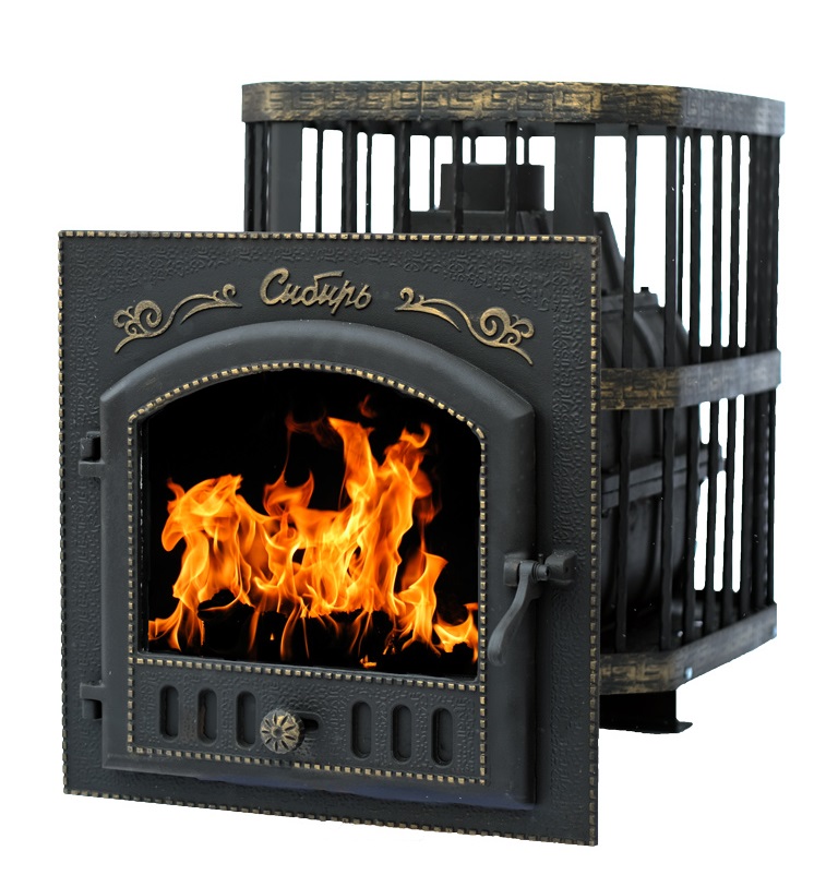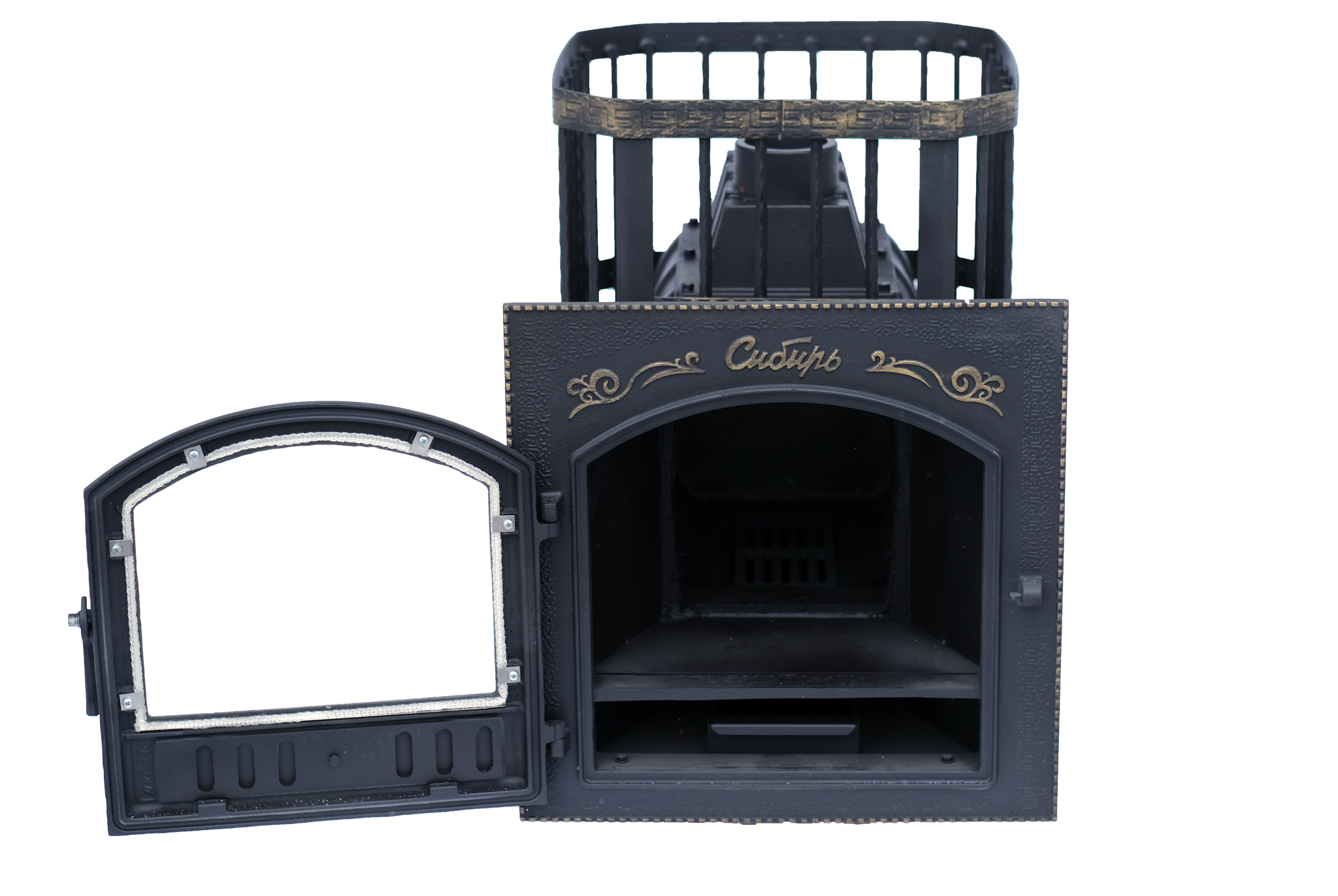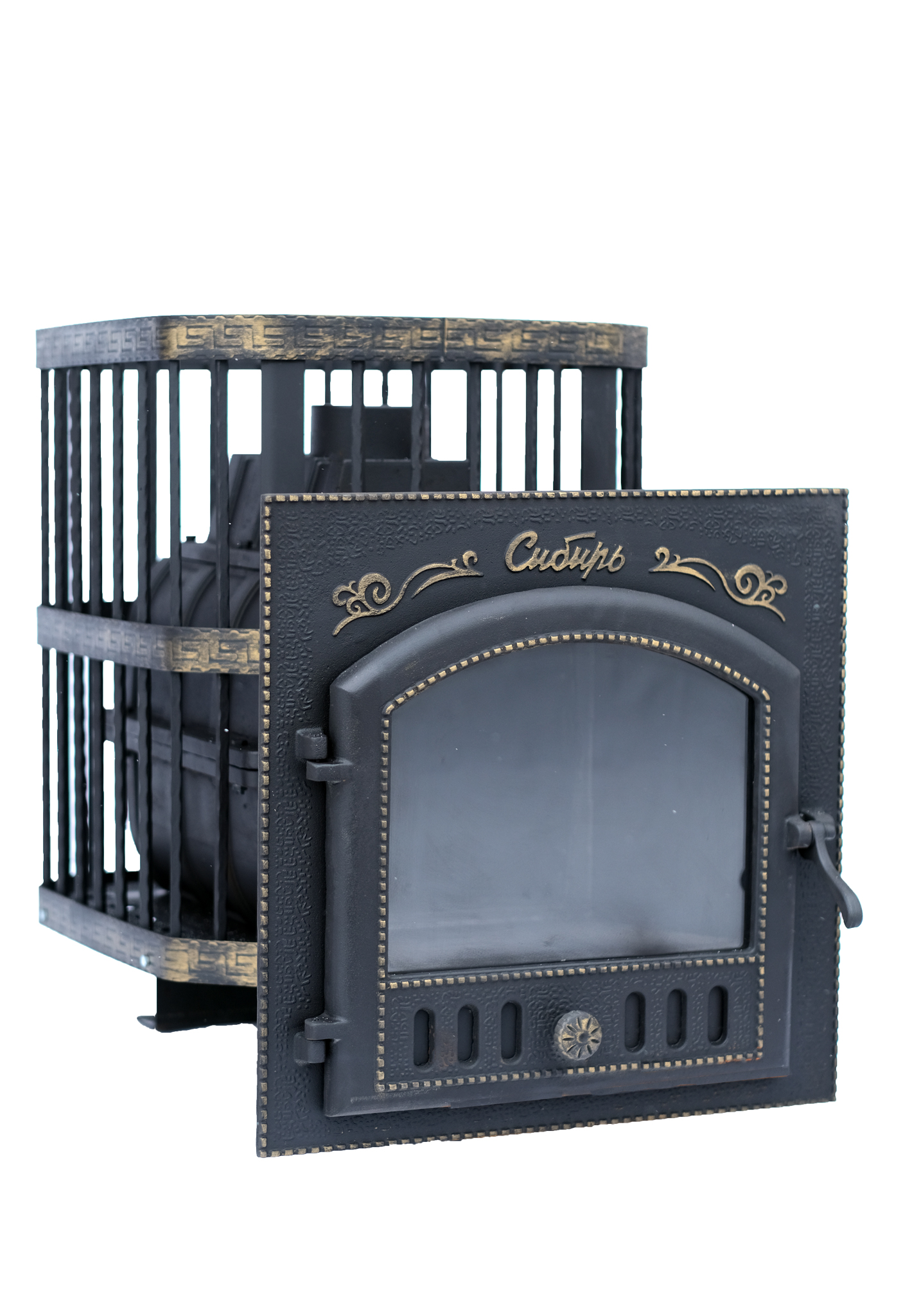 Чугунная банная печь НМК "Сибирь-24". Каминная дверца "Сибирь" 545х545 (сетка)