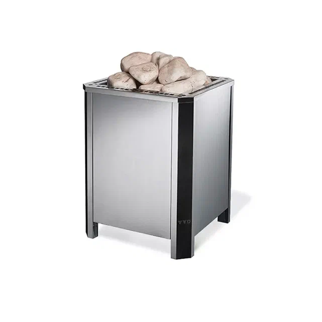 Надёжные нержавеющие ТЭНовые элементы обеспечили её неприхотливость в эксплуатации и гарантированную работу в режиме парообразования, а солидная масса печи - стабильный температурный режим в парном помещении, низкую цикличность работы эл. оборудования и его устойчивую работу.