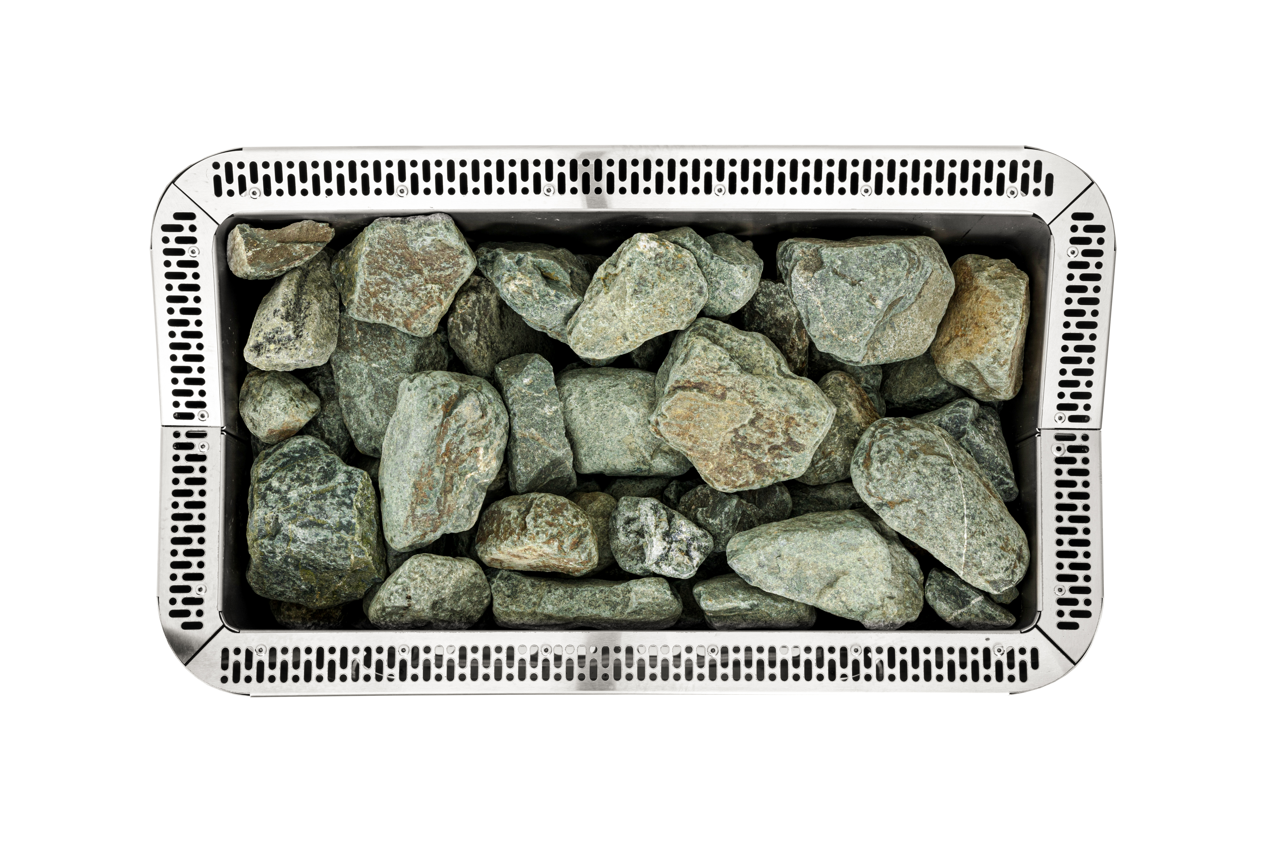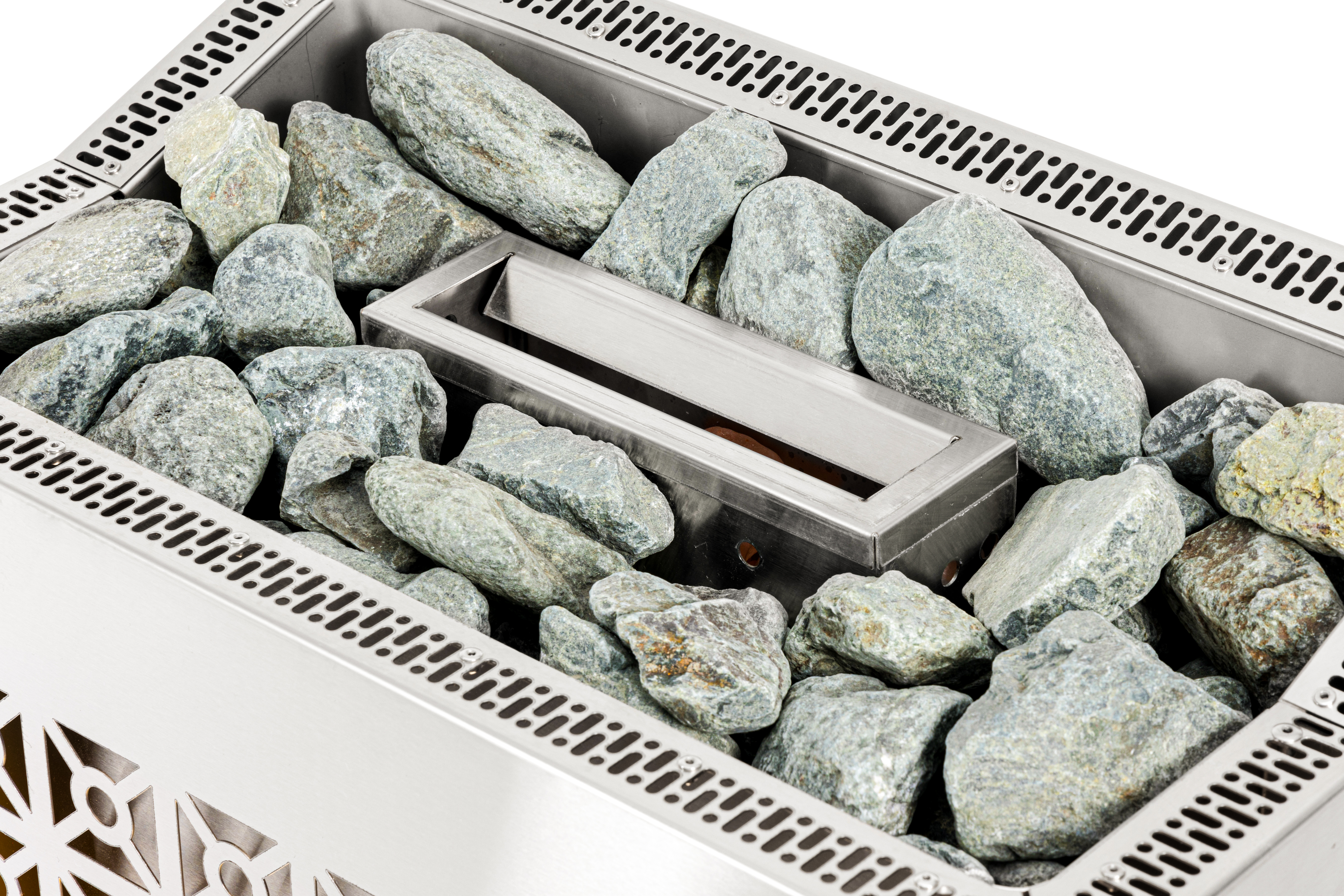 - На камни можно подавать воду, создавая эффект русской бани с обильным паром.