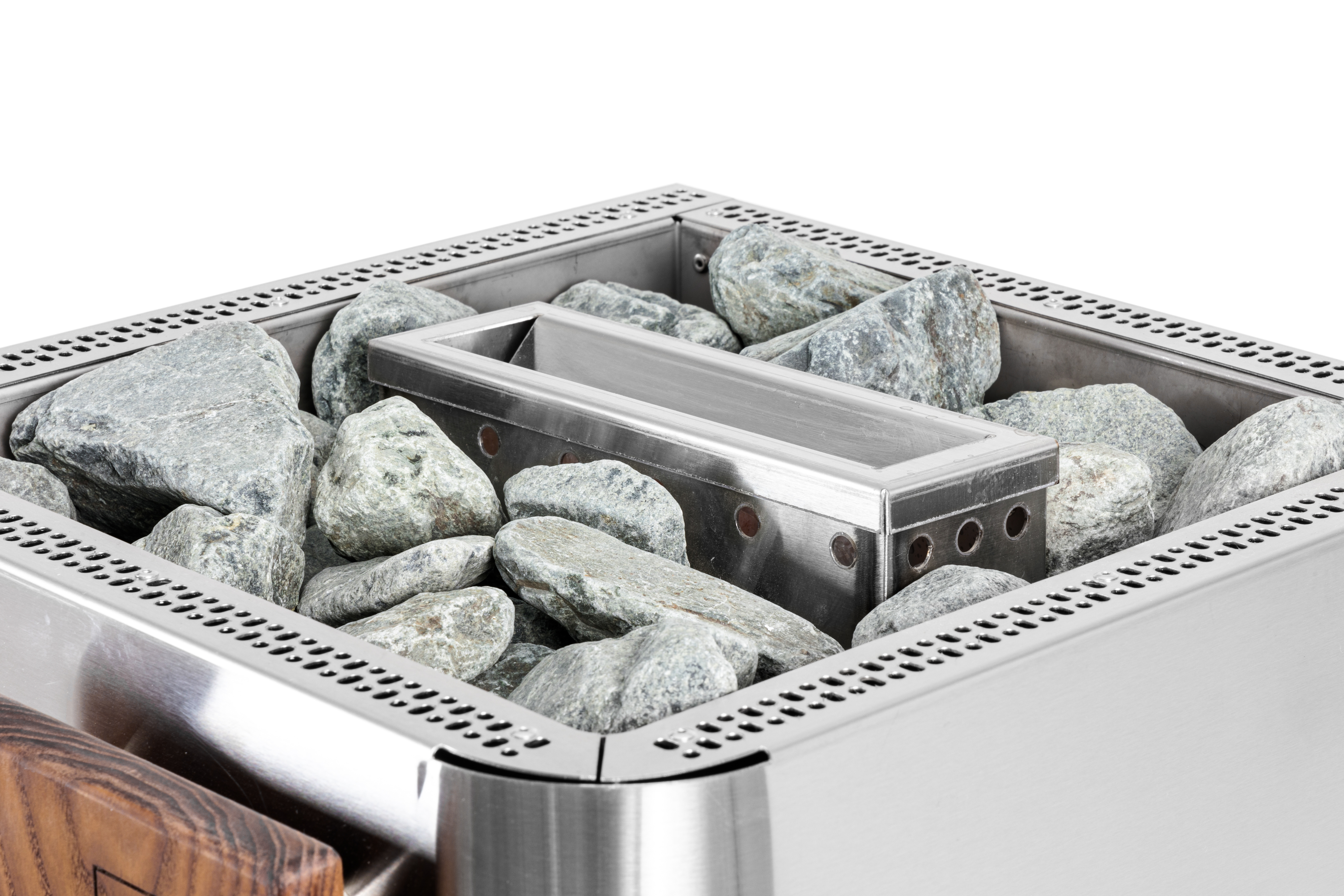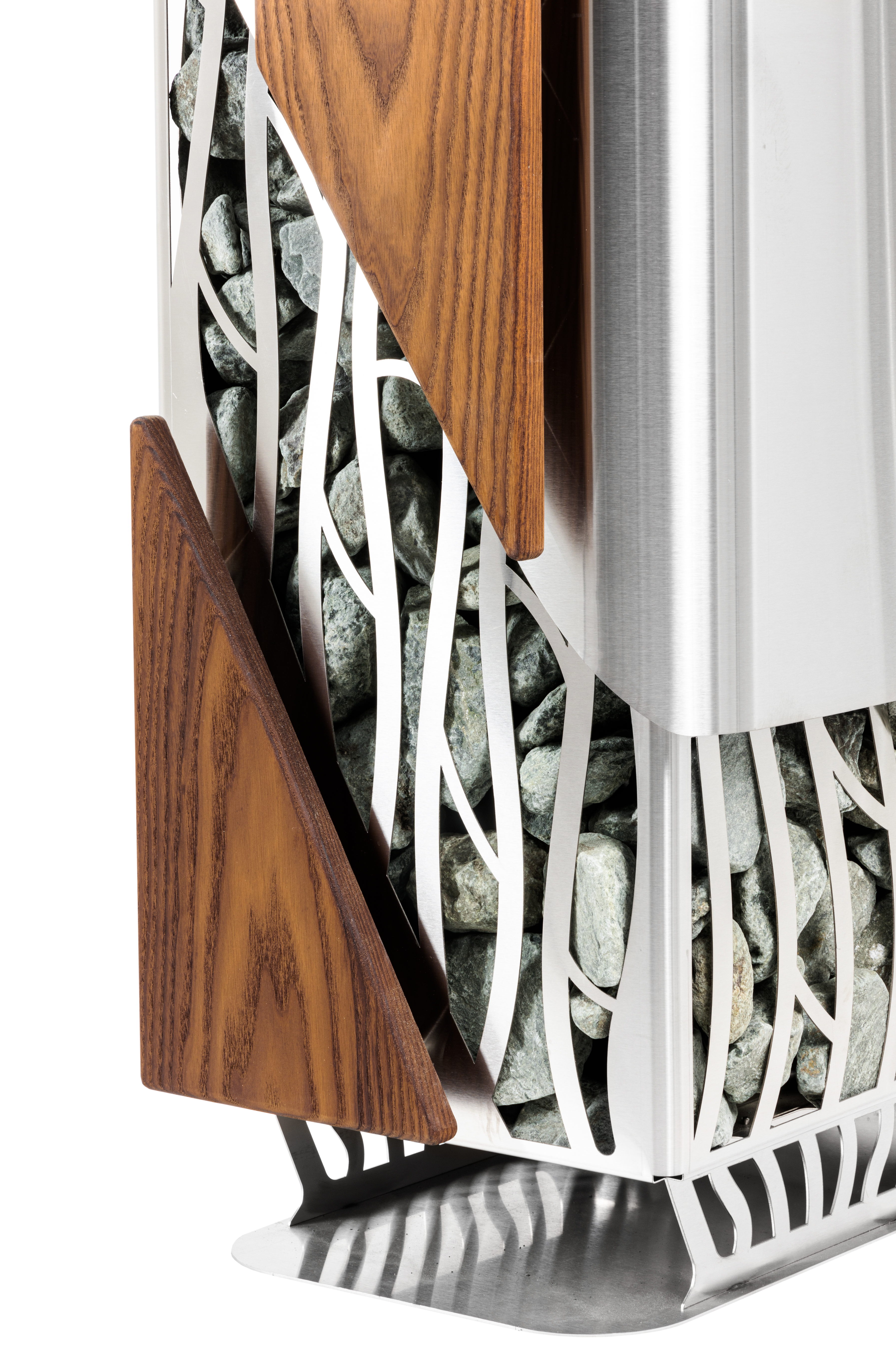 Дизайн этой каменки, как и в случае с BORN® STONE, вдохновлен самой природой. Изящный орнамент на корпусе гармонично сочетается с элементами из термоясеня.