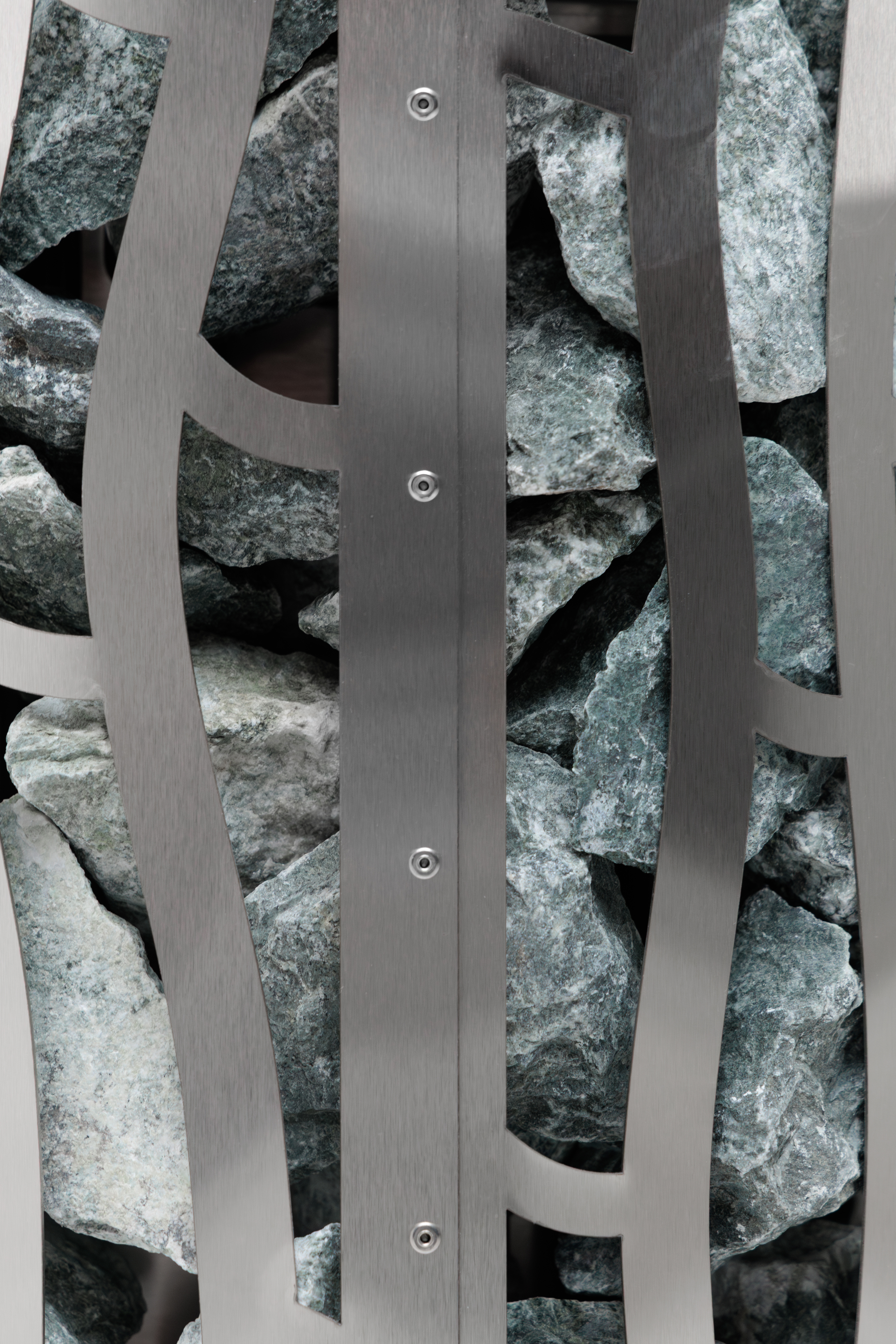 Вмещает до 100 кг. Хороший жар и равномерный прогрев парной. Можно свободно подавать воду на каменку, получая большое количество насыщенного пара на протяжении всего сеанса парения.