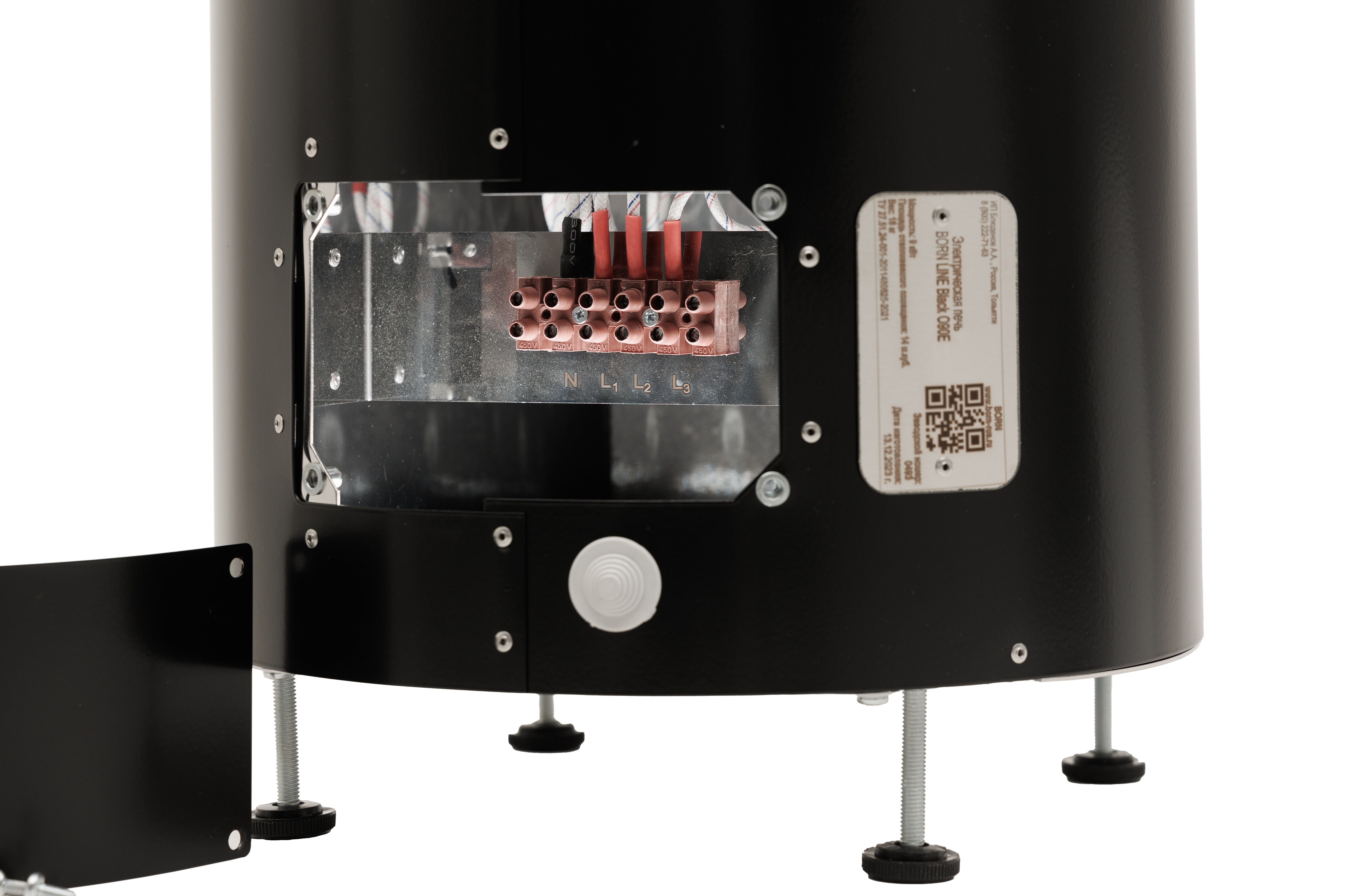 - Люк в нижней части печи обеспечивает легкий доступ к клеммной колодке для подключения.