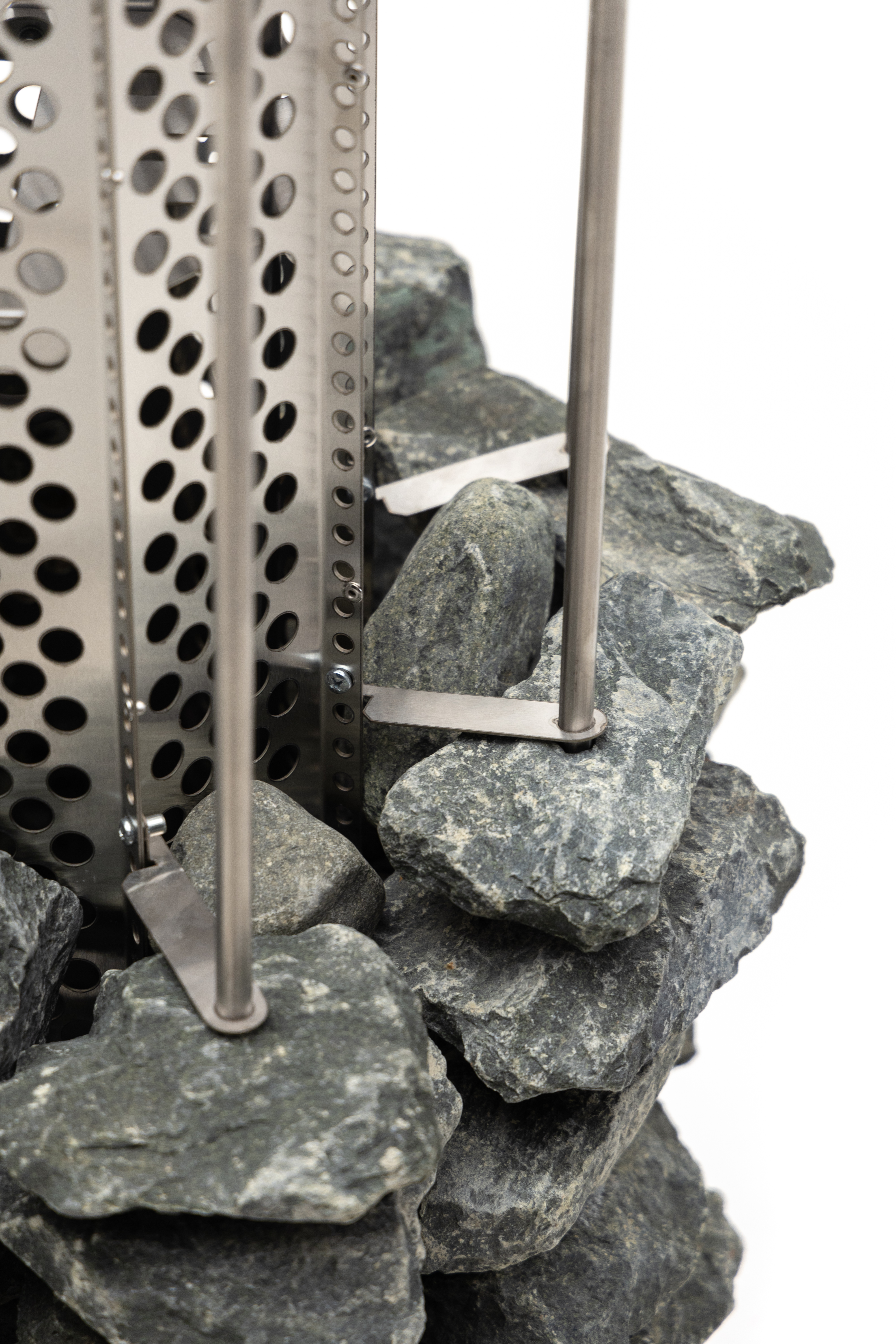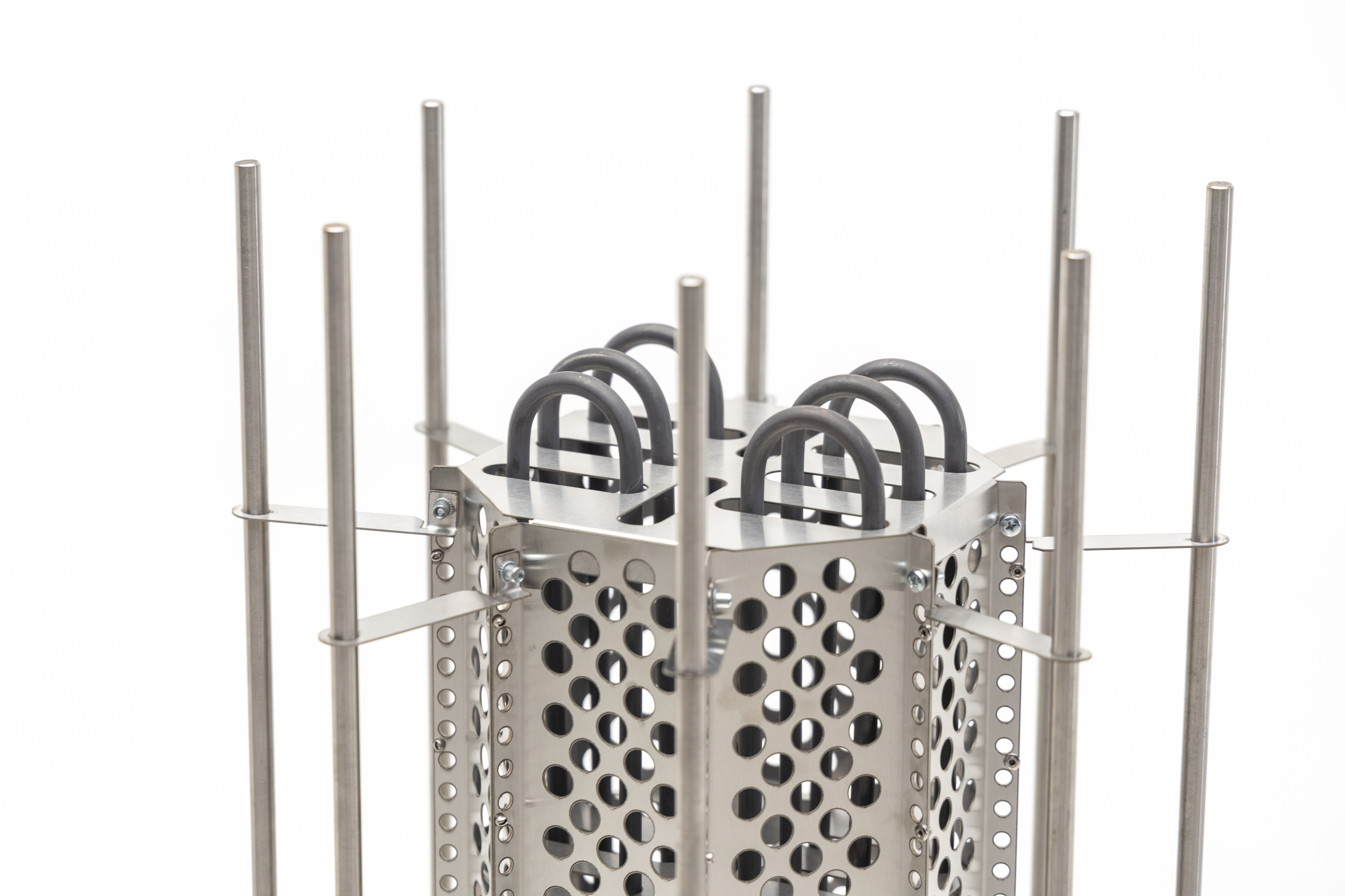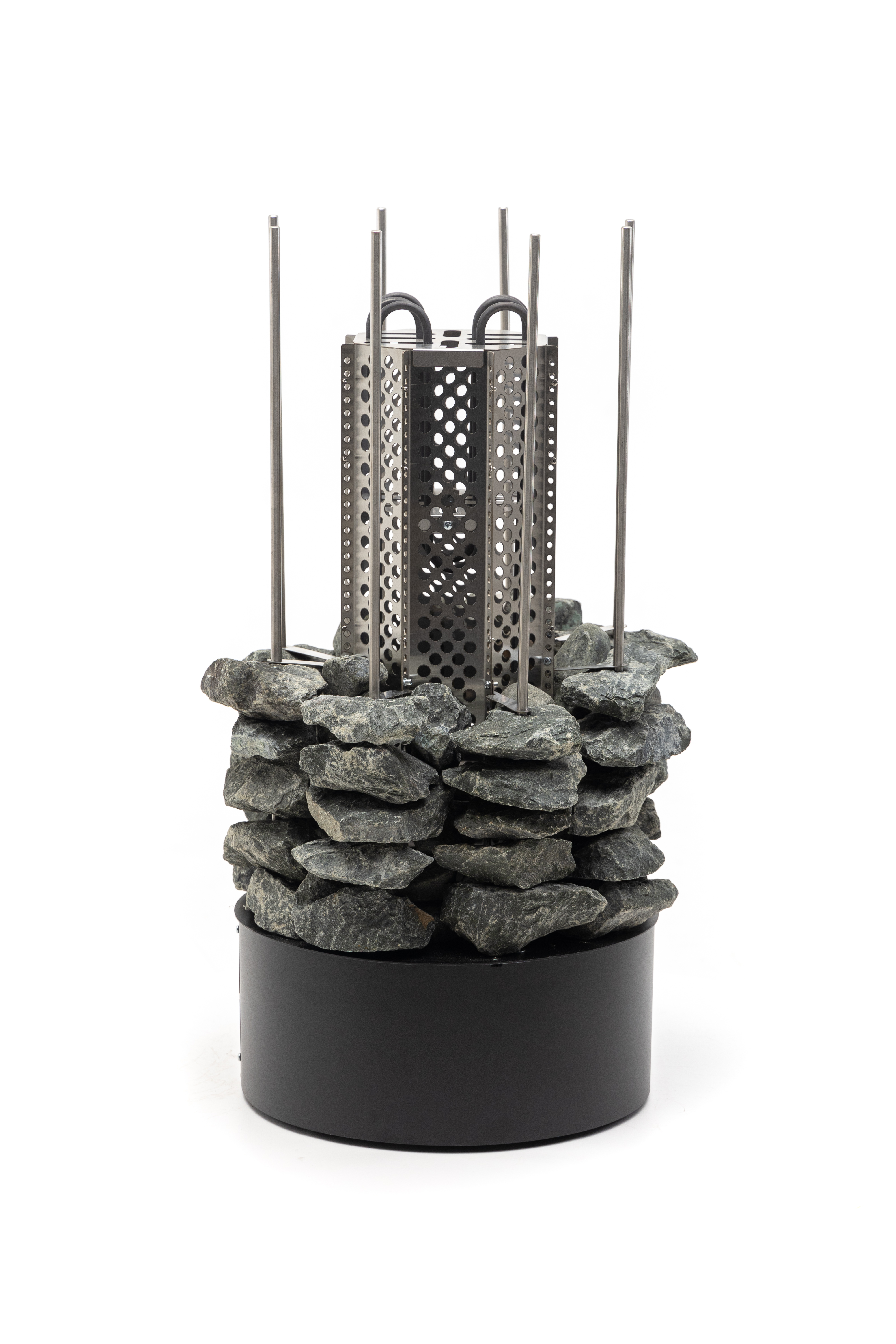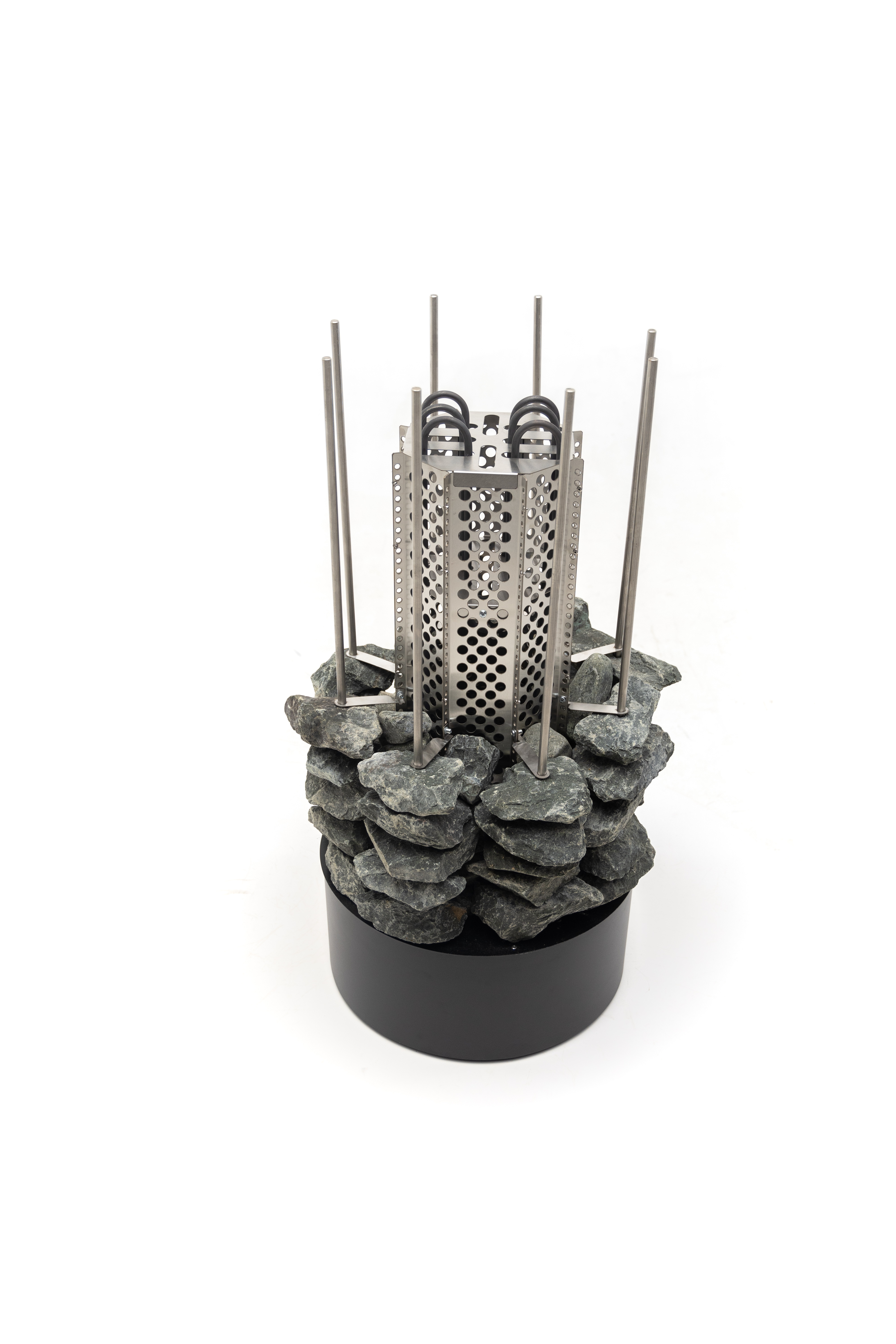 ТЭНы, защитный кожух для ТЭНов, шпильки для нанизывания камней, фиксаторы шпилек, нижняя часть – все сделано из жаростойкой, прочной, устойчивой к коррозии нержавеющей стали AISI 304.